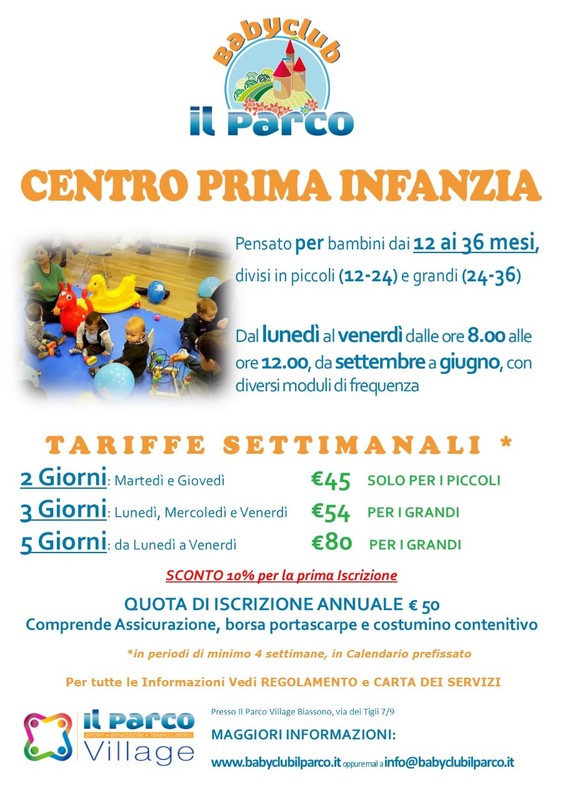 Per tutte le informazioni: www.babyclubilparco.it | Cell 393.9016107 | Mail: info@babyclubilparco.it