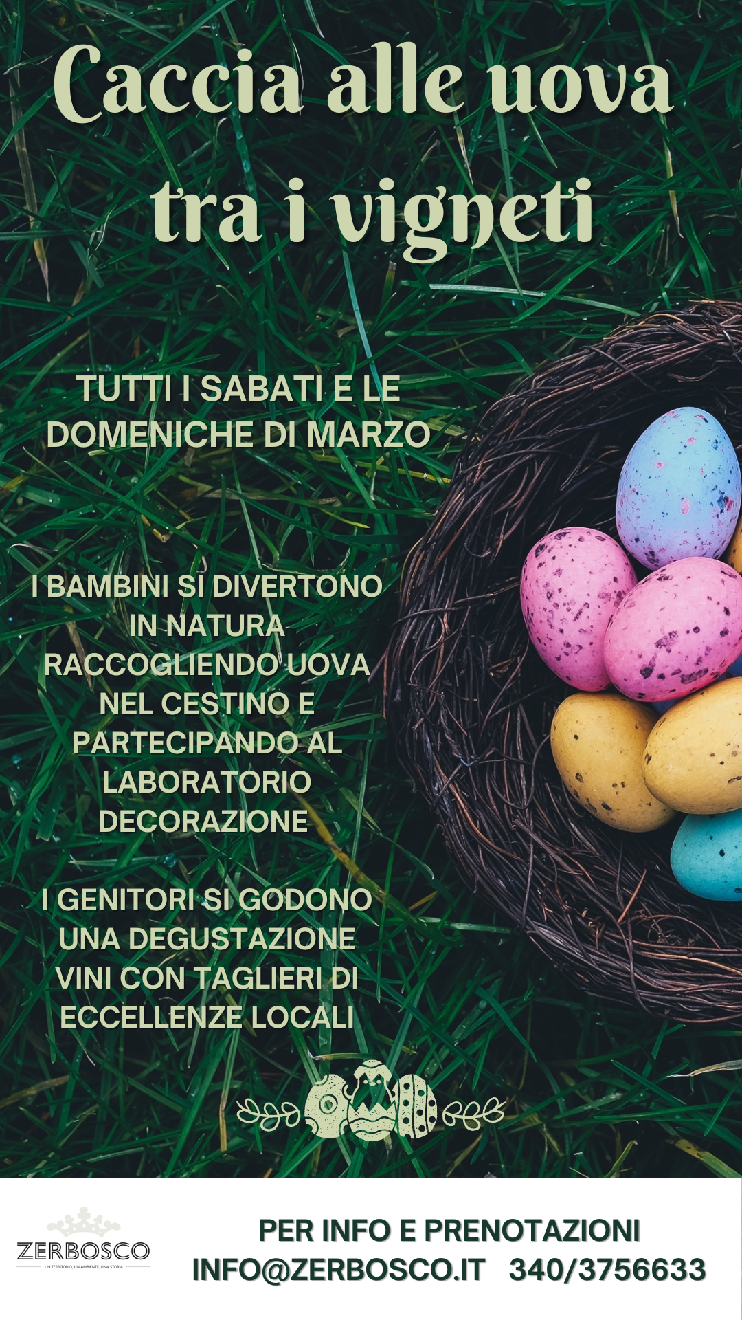 Da Zerbosco, azienda vitivinicola situata a Montù Beccaria, nell’ Oltrepò Pavese coltivano viti da tre generazioni; come ogni anno, in occasione delle festività Pasquali, torna la Caccia alle Uova nei vigneti!