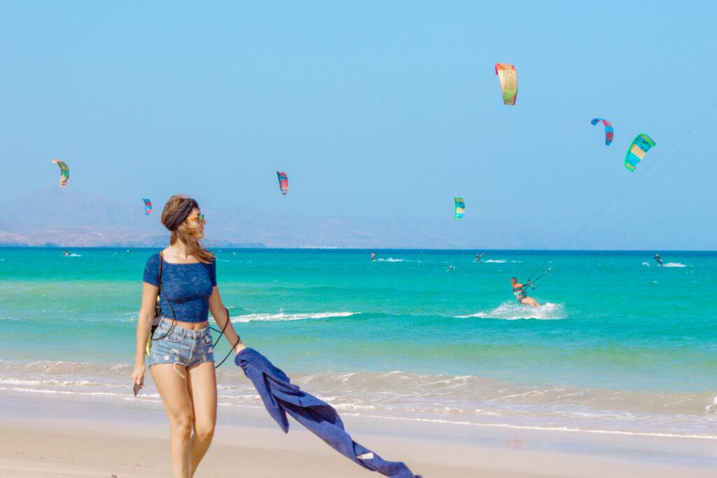 Fuerteventura è particolarmente esposta agli Alisei, venti che modellano con maestria le spiagge delle coste dandogli forme sempre diverse e che la rendono la meta perfetta per gli amanti degli sport acquatici come kitesurf e windsurf.