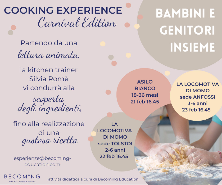 Partendo da una lettura animata, la kitchen trainer Silvia Romè vi condurrà alla scoperta degli ingredienti, fino alla realizzazione di una gustosa ricetta