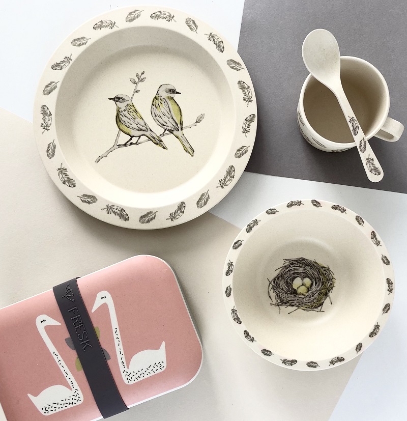 Una volta tornati in Italia la mancanza del dispenser ha contribuito a fare marcia indietro, ma ho cercato di mantenerle quella sana routine senza insistere. Amiamo apparecchiare la tavola della colazione e consumarla insieme; ognuno ha la tazza con cui si sente a suo agio e per Ludo non può mancare un set personale, l’ultima volta abbiamo scelto quello in bamboo trovato su Nordic Lullaby.