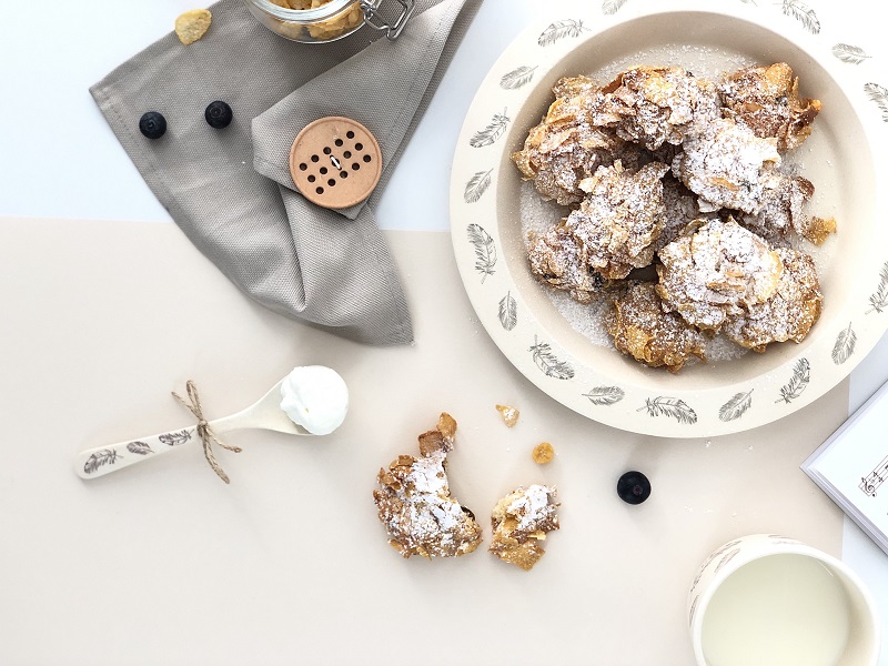 Ho provato una tenerezza infinita guardandola afferrare uno per uno quei leggeri fiocchi di mais e commentare: “Mamma, sono buonissimi” . Anche se, il passaggio successivo, ovvero l’aggiunta di latte, non l’ha entusiasmata.