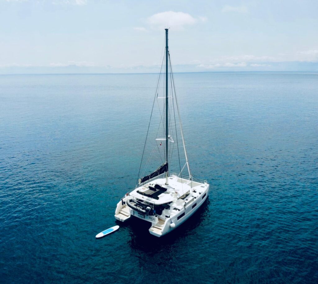Un catamarano di ultima generazione con grandi spazi e ogni comfort a bordo. Dispone di quattro cabine doppie, ognuna col suo bagno privato, e due cabine per l’equipaggio in una zona separata.