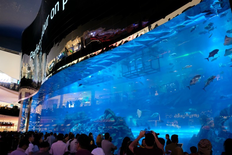 Dopo la discesa ci siamo mescolati alla folla in visita festiva al Dubai Mall, entrando a visitare l’Acquario. Se non avete tempo per farlo non vi perdete nulla di particolare e la vasca più grande con squali e mante è visibile a tutti gratuitamente nella hall del mall.