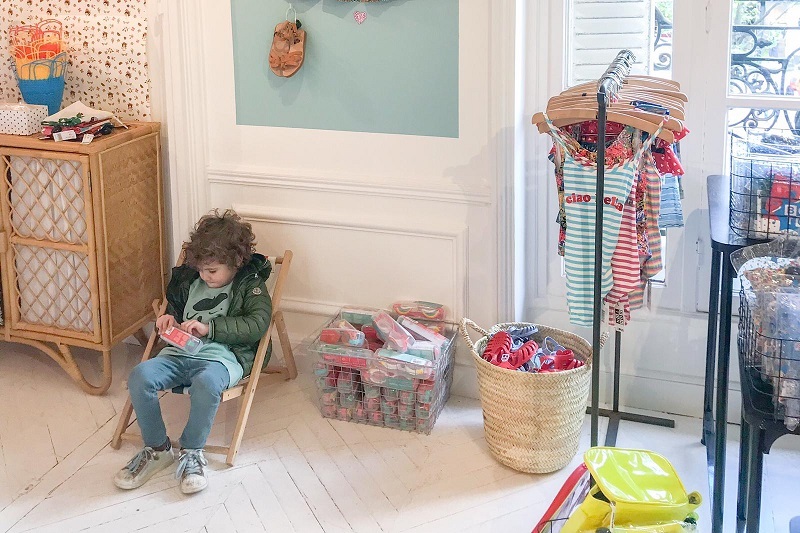 Restando in zona troviamo poco lontano la boutique del celebre negozio online Smallable, esattamente in rue du Cherche Midi 81 e sulla stessa via a poca distanza altre sfiziose boutique dei brands Louis Louise, Marie Puce e Bensimon. Relativamente al punto vendita fisico di Smallable sento di dover fare alcune precisazioni per non deludere le vostre aspettative di acquisto. Nella mia personale classifica shopping lo metto al quarto posto dei negozi da visitare a Parigi e ciò è dovuto al fatto che in realtà funge più da sorta di piccolo show room di alcuni marchi in vendita online e lo stock presente è davvero molto ma molto ridotto. In pratica sarà tutta una questione di fortuna se troverete o meno uno specifico capo che avevate adocchiato online, purtroppo non hanno il servizio di click and collect e propongono una piccola selezione di capi in ogni taglia quindi è probabile che vi tocchi poi acquistare come di consueto in rete. Tuttavia è da vedere e visitare come negozio perché può essere che nell’offerta di capi presente in loco troviate qualcosa di interessante e comunque propone una serie di accessori e giochi ricercati.