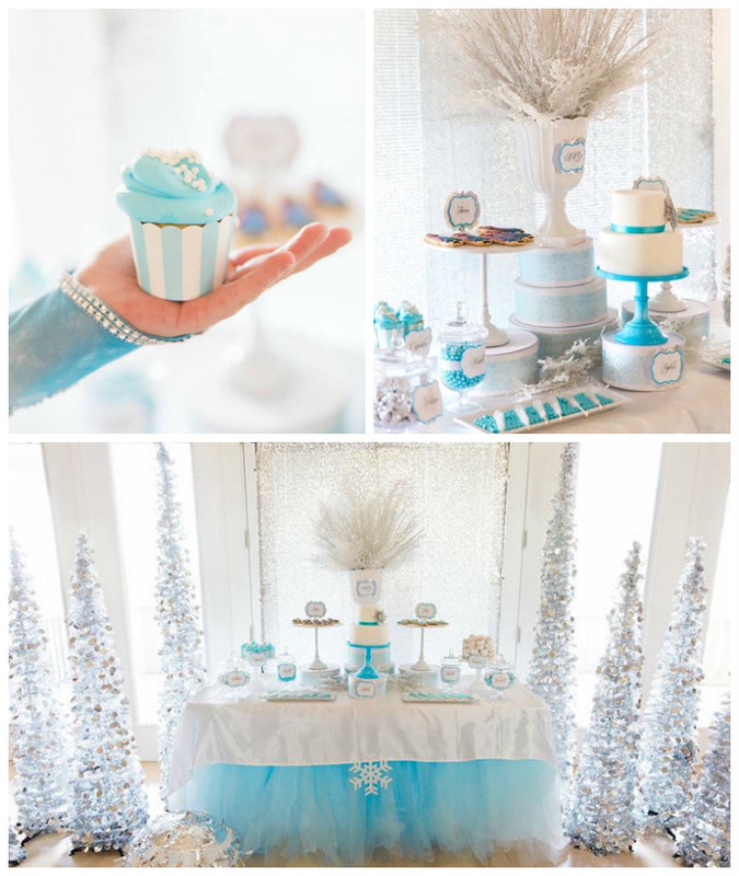 Una tavola rivestita di tessuto azzurro e tulle bianco è il punto principale di questo compleanno ispirato a Frozen, l’ideale per un compleanno invernale. Il segreto di una festa ben riuscita è scegliere un tema, i colori principali e sbizzarrirsi!