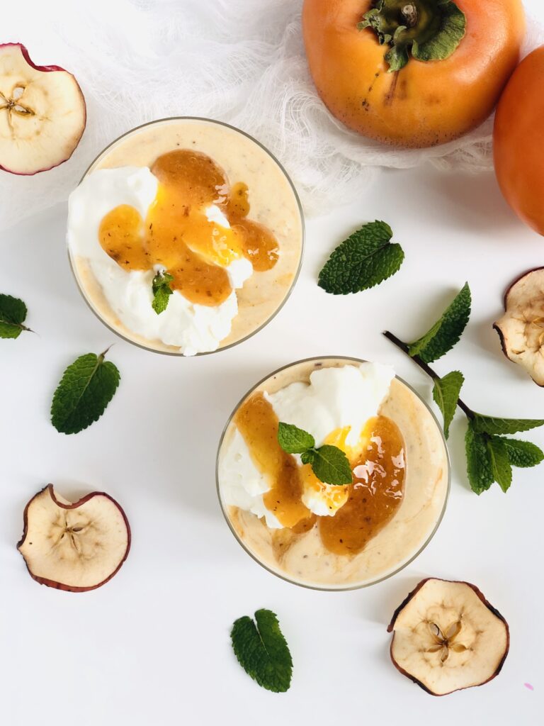 Prima di servire in coppette, pelare e frullare la polpa dei cachi.