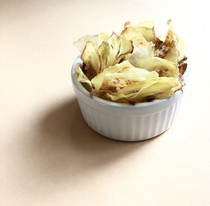 Infornare le chips per 15 minuti, fare un primo controllo sullo stato di cottura prima di procedere con gli ultimi 5 minuti di cottura in modalità grill. I tempi cambiano in base al tipo di forno.
