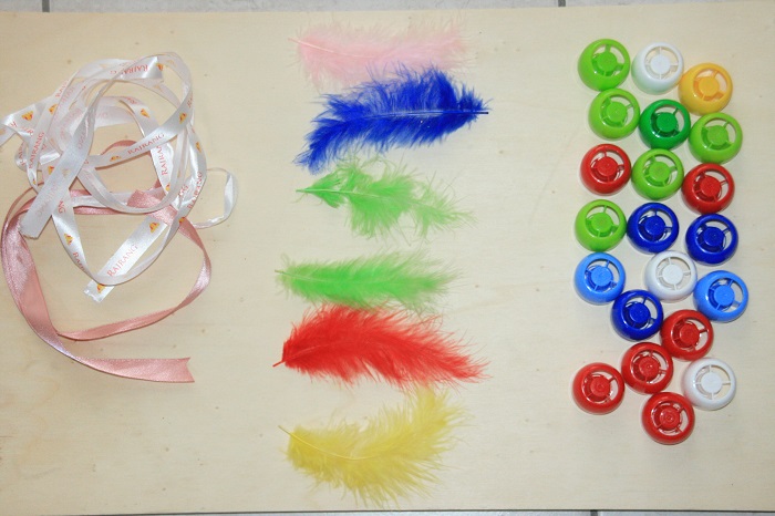 Ecco una lista di ciò che possiamo tenere da parte e che possiamo offrire ai bambini: carta e cartoni di qualsiasi tipo e formato, contenitori di plastica e vetro e i relativi tappi, tessuti, nastri, piume, spugne, tubi, cannucce, ecc.