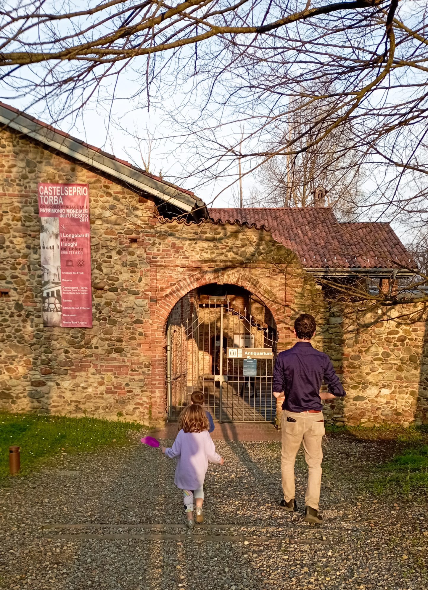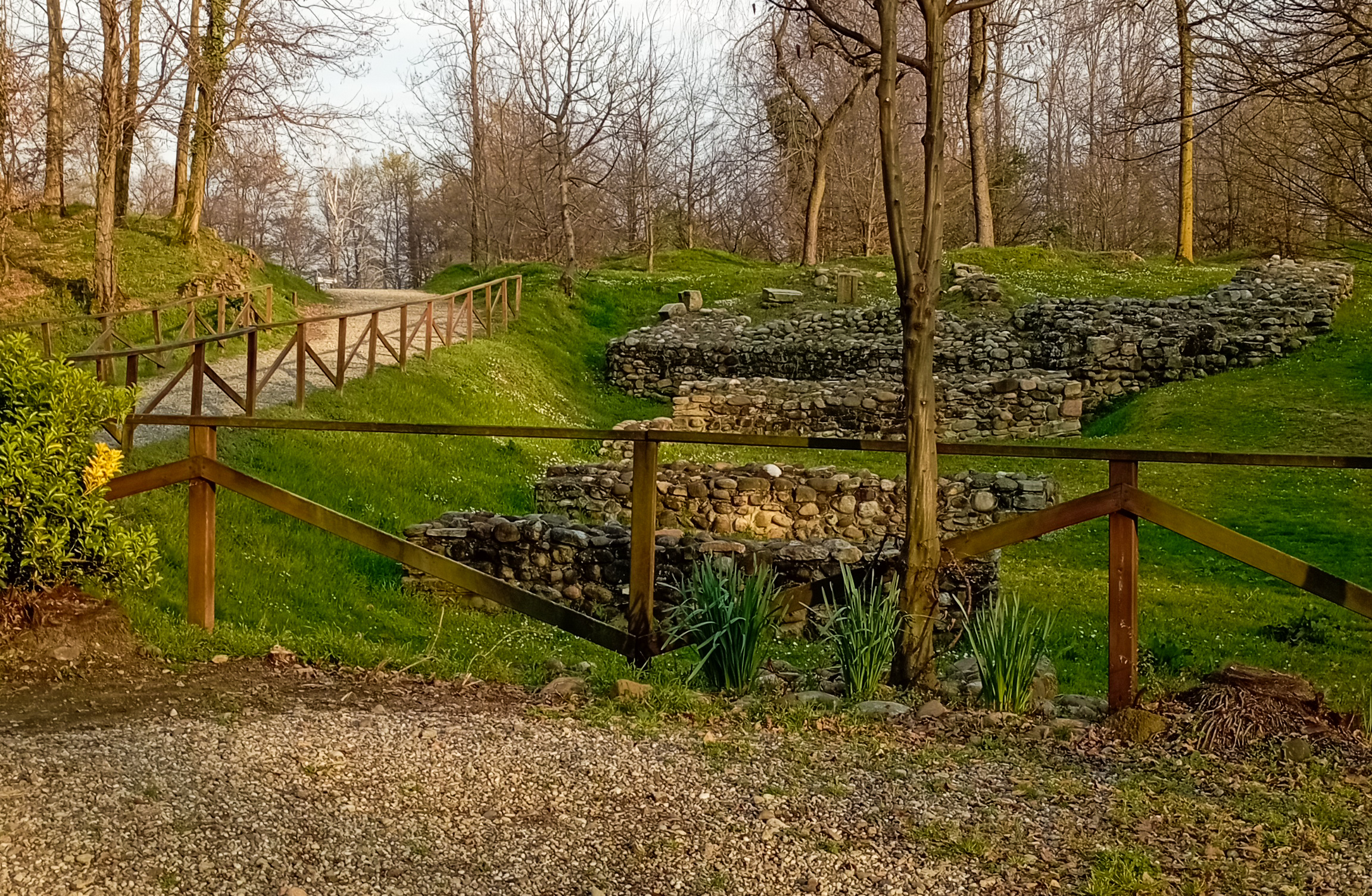 Il Parco Archeologico di Castelseprio comprende i resti di un castrum , cioè l accampamento fortificato nei quali risiedeva l’esercito romano , datato intorno al V secolo d.C , a cui si sono aggiunti nelle epoche successive anche i resti della chiesa di San Giovanni e gli edifici abitativi e di servizio. A dire il vero I resti sono ben visibili e imponenti, ma senza le guide non si riesce a capire cosa sono : la soluzione è come al solito giocare di fantasia con i bambini.