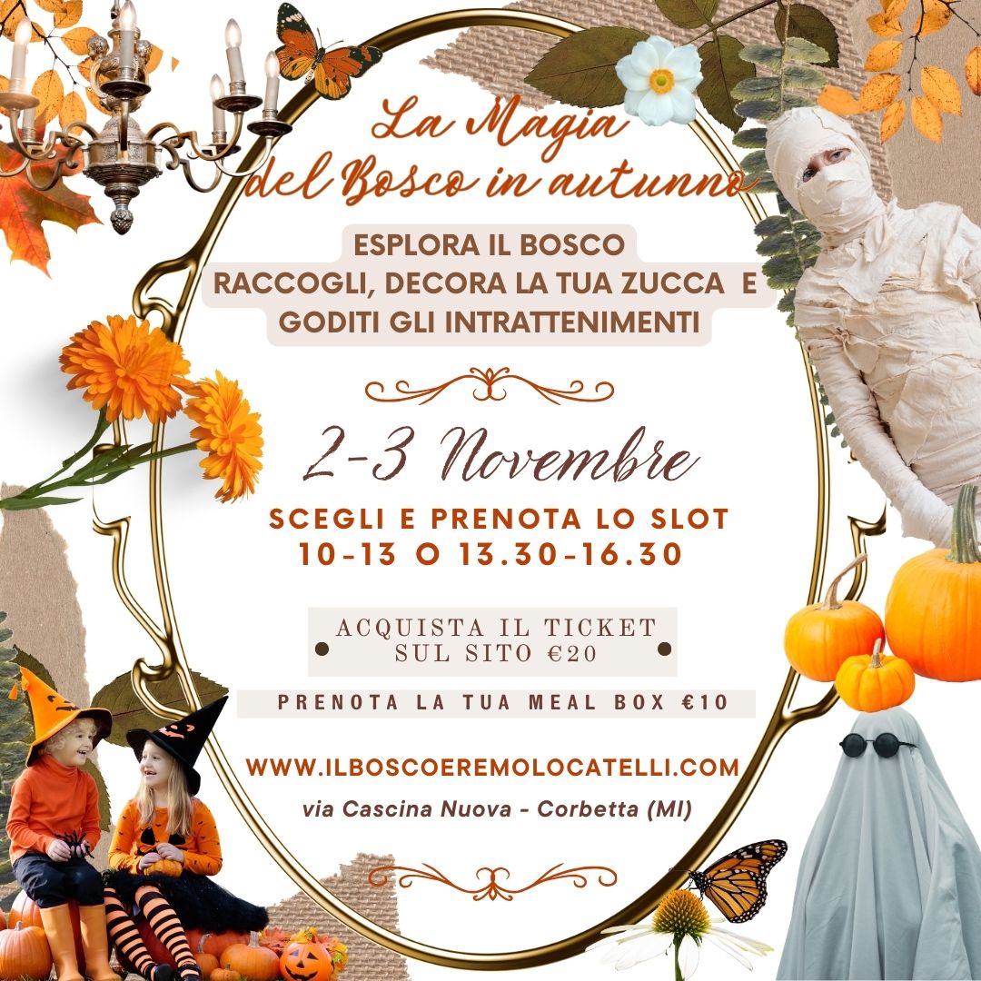 Mums Sabato 2 e Domenica 3 Novembre, in occasione della ricorrenza di Halloween, Il Bosco Eremo Locatelli a Corbetta ( MI ), torna a proporre due giornate speciali a “cancelli aperti” destinata a tutte le famiglie, affinché tutti quanti, dai più piccoli ai più grandi, possano divertirsi e godersi il Bosco in tutto il suo splendore autunnale.