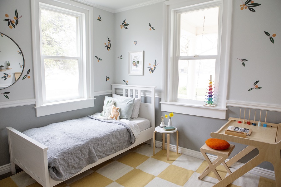Se sceglierai uno sfondo con motivi audaci, non aver paura di renderlo una caratteristica della camera e coordinare il resto per abbinarlo.