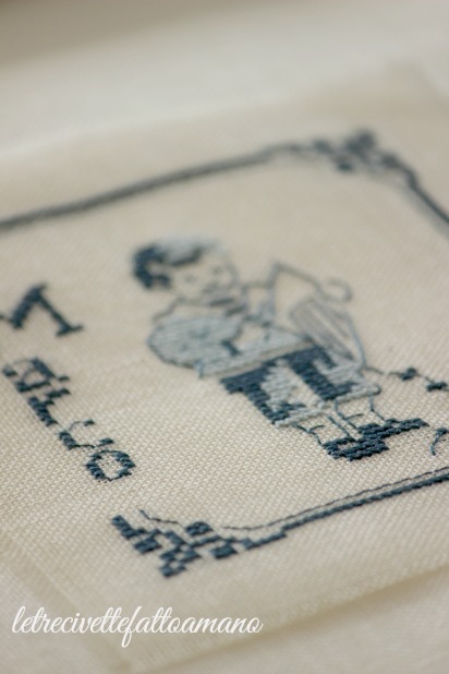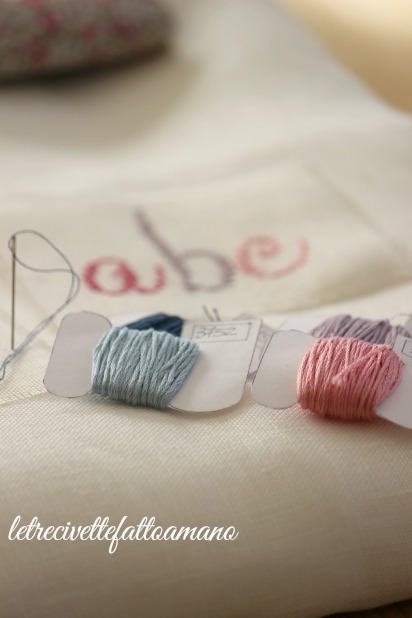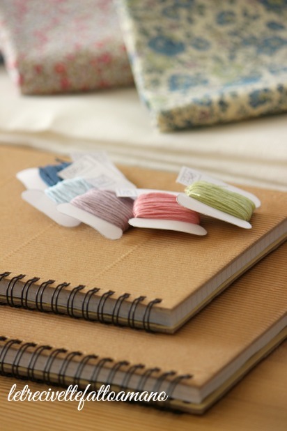 L'idea nasce dopo aver acquistato,per pochi euro al supermercato,dei quaderni; per il ricamo ho scelto della tela in lino,successivamente posizionata sulla copertina con della colla per tessuto.