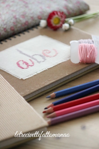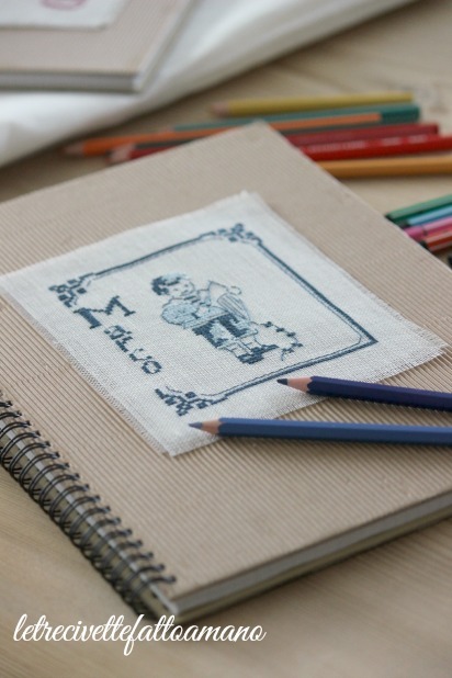 Oggetti di uso quotidiano, come un quaderno o un block notes, con un po' di fantasia e un pomeriggio di ricamo, possono diventare un prezioso raccoglitore per le prime avventure dei nostri figli.