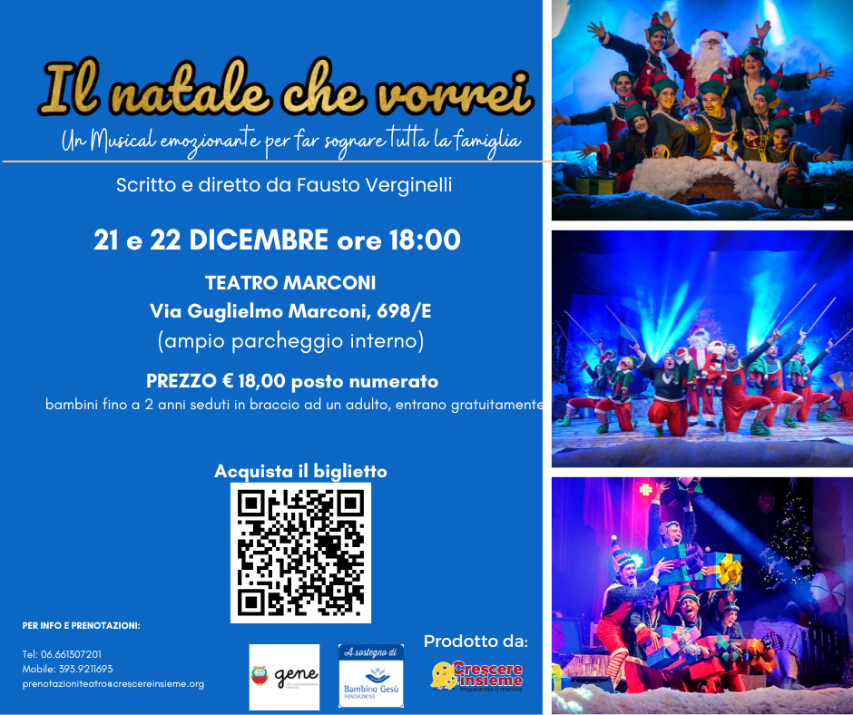 Per conoscere tutte le informazioni sul musical, vedere il trailer e le foto delle edizioni passate, visita la pagina dedicata: Il Musical il Natale che Vorrei.