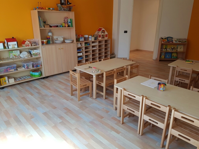 C’è l’atelier dove i bambini possono dedicarsi alla pittura e ai giochi sporchevoli, per esempio. Poi c’è anche il gioco simbolico dove si svolgono attività di imitazione , una piccola casa in miniatura dove i bambini sperimentano e mettono in pratica ciò che vedono in casa propria; lo spazio psicomotorio, per la ginnastica propedeutica, lo spazio per le costruzioni e il gioco libero, l’angolo morbido per le coccole, le canzoni o la lettura delle fiabe! Inoltre c’è il salone multidisciplinare dove vengono svolte altre attività ludiche e dove c’è una zona adibita ai giochi ad ispirazione Montessoriana. Buona parte delle attività e dei giochi sono stati ideati e costruiti dalle insegnanti, le quali da più di 15 anni lavorano e crescono professionalmente e con entusiasmo insieme ai loro bambini.