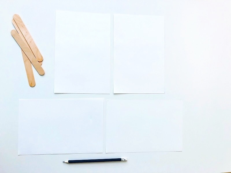 Materiali: Cartoncino bianco o colorato, bastoncini di legno, pennarelli, matite, forbici, colla vinilica, glitter.