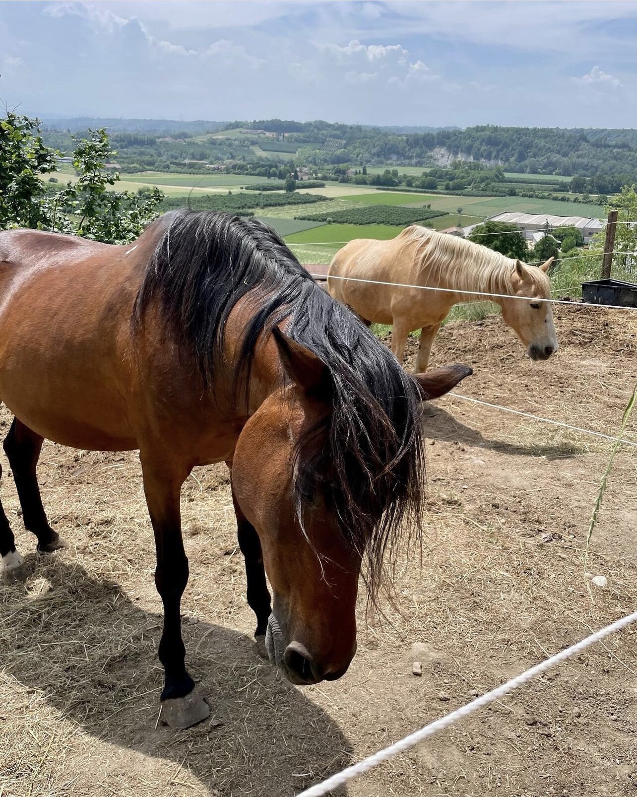Nel giardino si trova anche una piscina con vista vigneti, la scuderia dei cavalli e alcuni giochi per i bimbi.