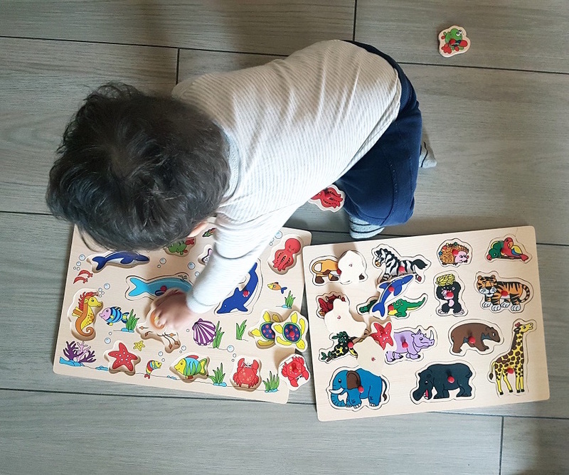 Lo adora!!! E’ il nostro gioco preferito da fare insieme la sera, sul tappeto, prima della nanna. E’ un’attività molto versatile perché si può giocare in diversi: una volta si fanno tutti i versi degli animali, la volta dopo si gioca solo ad indovinare le figure, oppure nei momenti di maggior stanchezza si possono inventare delle simpatiche storielle usando le sagome in legno come marionette. Insomma, spazio alla fantasia!