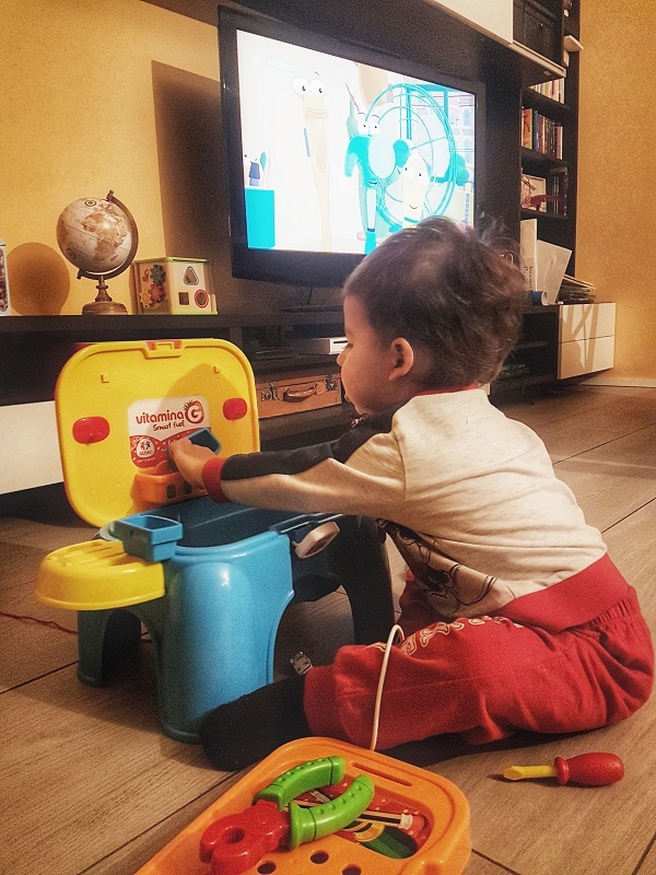 Eh niente, se io sono fissata con i giochi in legno mio marito è un pochettino fissato con tutti i giochi che hanno a che fare con il mondo delle costruzioni: ruspe, ruspette, camioncini … Neanche a dirlo, pure lui ha trovato il suo gioco preferito su Globo Giocattoli: il tavolino baby-bricolage di Vitamina G. E devo dirvelo mamme, vedere il mio bimbo così intento a seguire le orme del papà e imparare il suo lavoro attraverso il gioco, mi riempie il cuore di gioia perché mi rendo conto che quel momento di svago, non è un momento “perso”: ma un momento di crescita, scoperte e conoscenza e credo che sia questo il regalo più importante che noi genitori possiamo fare ai nostri figli. Ma emozioni a parte, devo dire che sono rimasta super soddisfatta della qualità dei materiali: nonostante l’uso che ne fa mio figlio, saltandoci sopra o prendendolo a martellate, la plastica non si è ancora rovinata né rotta, ed è una qualità da non sottovalutare. Stesso discorso lo posso fare anche per il puzzle in legno, che è ancora perfettamente intatto nonostante ci giochiamo praticamente ogni sera da più di un mese. Sembrano banalità, ma voi mamme lo sapete quanto sia importante far giocare bene i nostri figli … e comunque, questo banchetto bricolage è davvero carinissimo! E il mio bimbo lo tira fuori ogni volta che alla tv guardiamo Manny TuttoFare: è felicissimo di avere tutto gli attrezzi identici a quelli che vede nel cartone e mi fa morire dal ridere quando fa finta di aggiustare le cose in giro per casa!!!