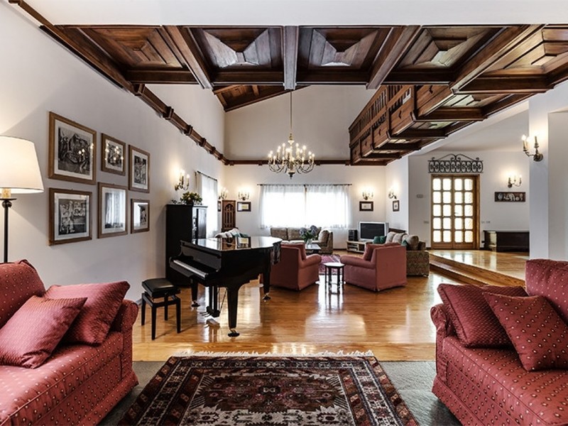 Gli spazi sono davvero accoglienti: la cucina super attrezzata, il grande living con camino e piano forte a coda, la zona camino, la taverna con bar, la piscina coperta, la sala biliardo e il parco (dove sono presenti ben 2 barbecue per succulenti grigliate estive). Sette camere, sette bagni e una gigantesca mansarda con diversi posti letto.