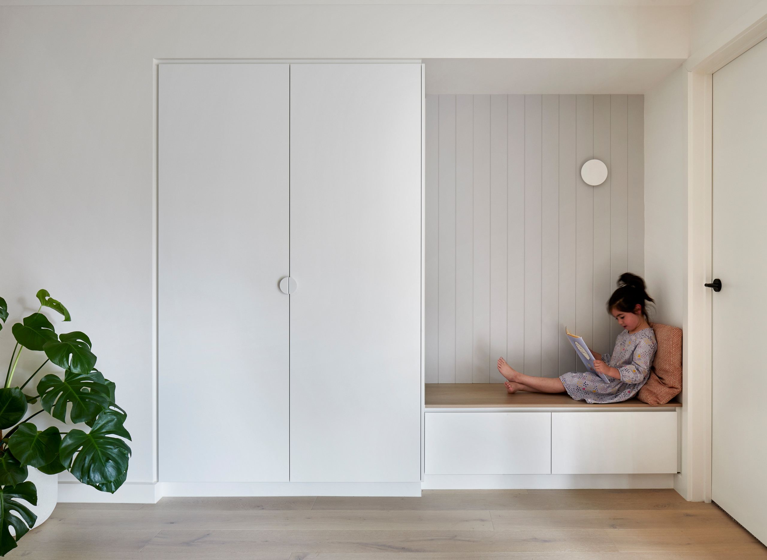 può essere interessante pensare di integrare una panca in cui accucciarsi e leggere, protetti dalla profondità della struttura.
