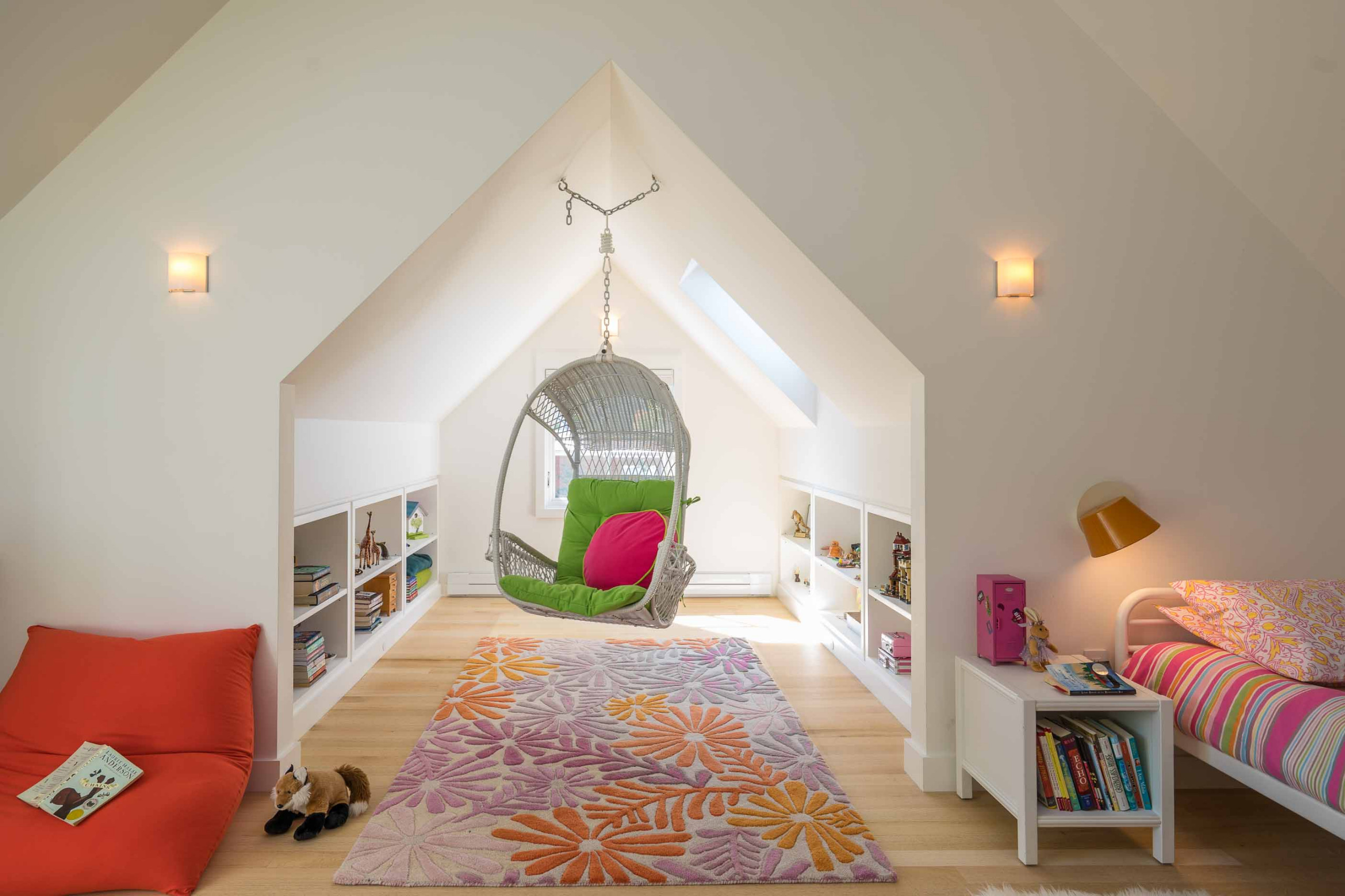 Effettivamente è un grande lusso avere una stanza dedicata alla lettura, ma potrebbe trattarsi anche di un’area di una playroom, in mansarda magari.
