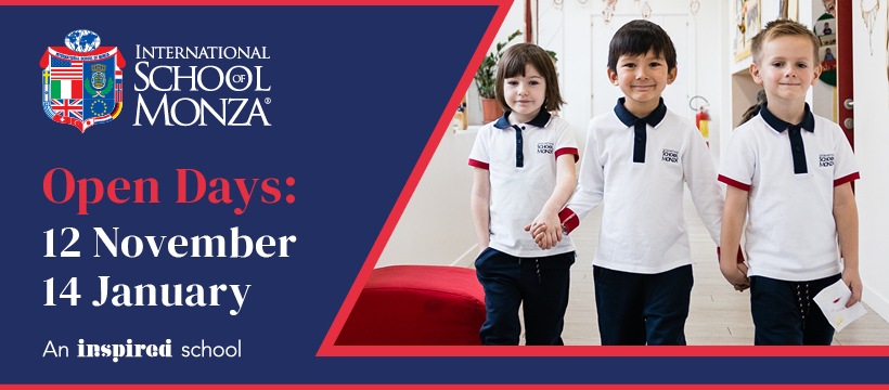 Sabato 12 novembre dalle 08.45 i docenti e lo staff di International School of Monza, vi aspettano per un Open Day per visitare il campus e conoscere le attività della scuola internazionale, approfondendo le grandi opportunità offerte dai programmi didattici adottati.