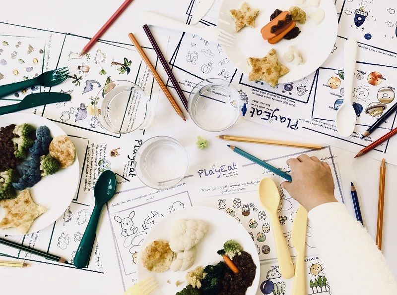 I nostri bimbi sono creature dalle mille risorse e talvolta hanno semplicemente bisogno di essere accompagnati alla scoperta di nuovi stimoli. Fin da quando Ludovica era piccola [adesso ha 4 anni] ho ridotto drasticamente fino ad eliminare la presenza del cellulare a tavola. Ho preferito rinunciasse a video, cartoni animati, videogiochi nel momento del pasto, sia che ci si trovi a casa sia al ristorante. Il progetto PlayEat di Giulia mi è stato di grande aiuto! Da quando usiamo le sue tovagliette tematiche, e portiamo con noi i libretti con giochi e indovinelli, Ludovica è sempre più propensa ad assaggiare quello che trova nel piatto.