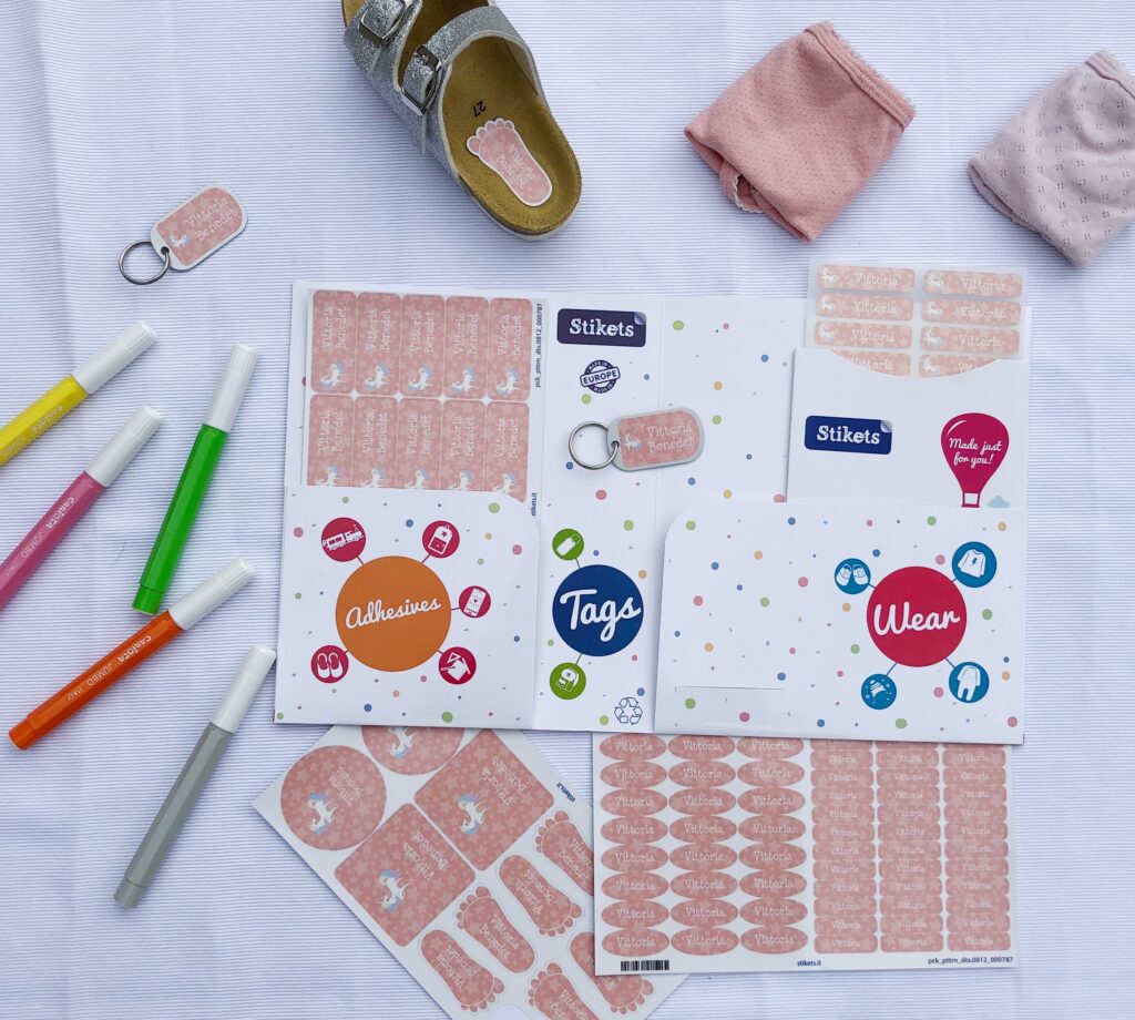 Ricordo che quando ero bambina mia madre preparava dei foglietti con scritto il mio nome da attaccare con lo scotch ad ogni penna e matita. Una fatica incredibile ed un lavoro che oggi possiamo delegare alla creatività di Stikets.