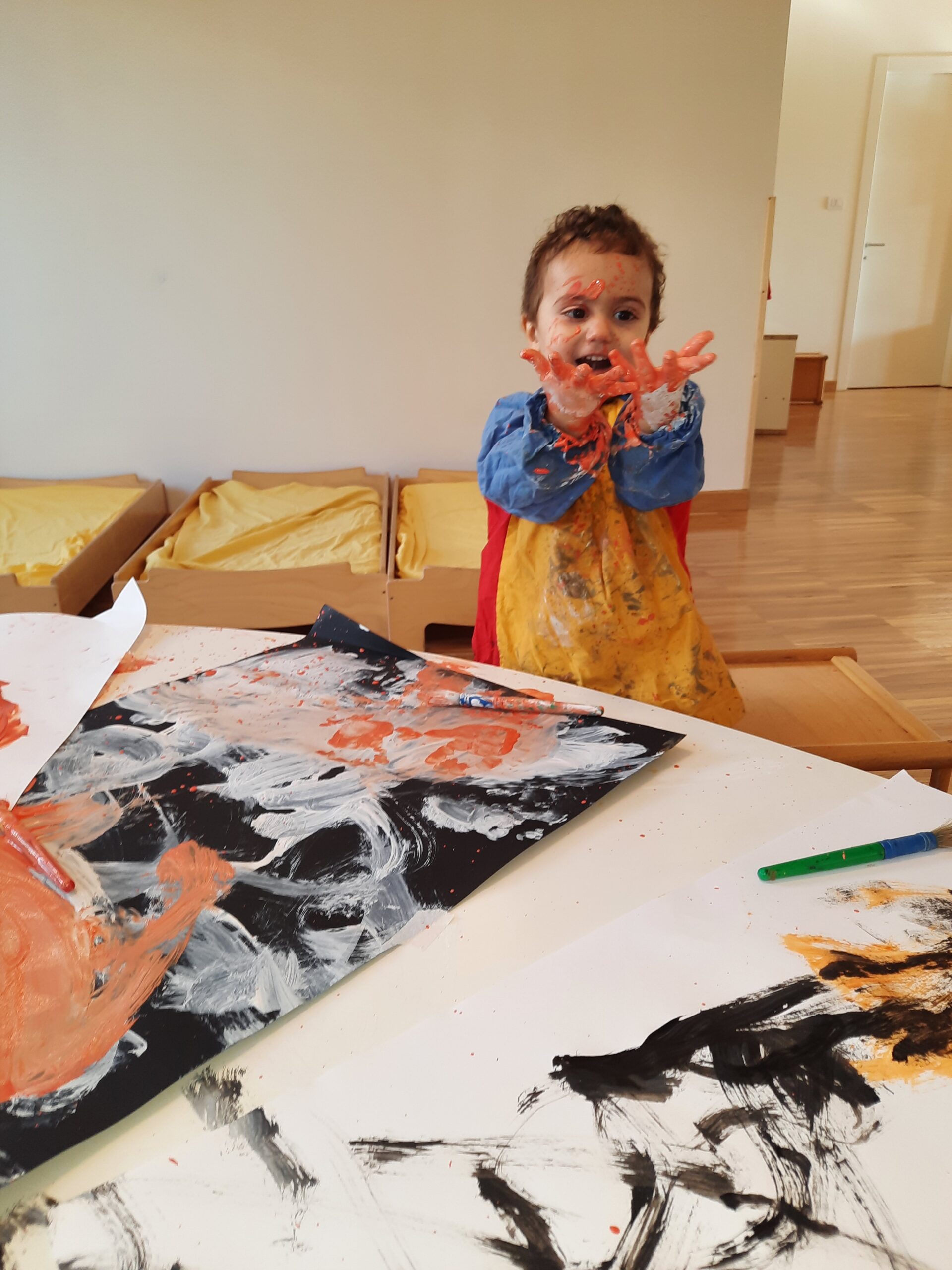 I linguaggi creativi fanno parte della giornata dei bambini, i quali hanno accesso a molteplici strumenti e materiali, ben evidenti in contesti che suggeriscono il loro utilizzo. Tutte le educatrici sono formate a promuovere il potenziale dei linguaggi creativi, per questo la manipolazione della creta, la pittura e il disegno, i giochi di luce e ombra, diventano occasioni non solo di piacere esplorativo ma anche porte sulla conoscenza. E’ infatti scientificamente acclarato che i bambini hanno la possibilità di sviluppare un pensiero divergente originale e acquisire maggiore fiducia in se stessi se fin da piccoli incontrano linguaggi ricchi di stupore.