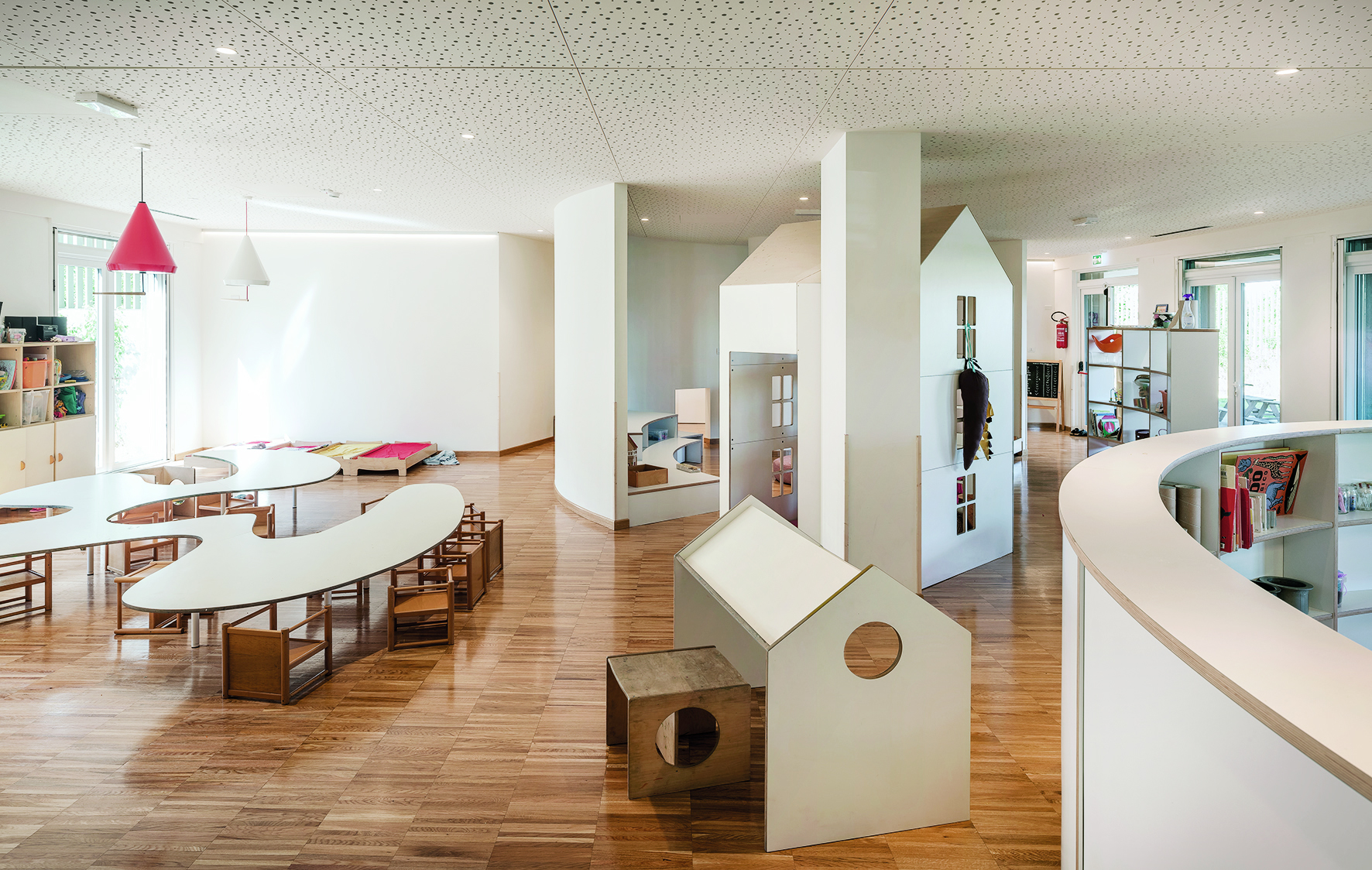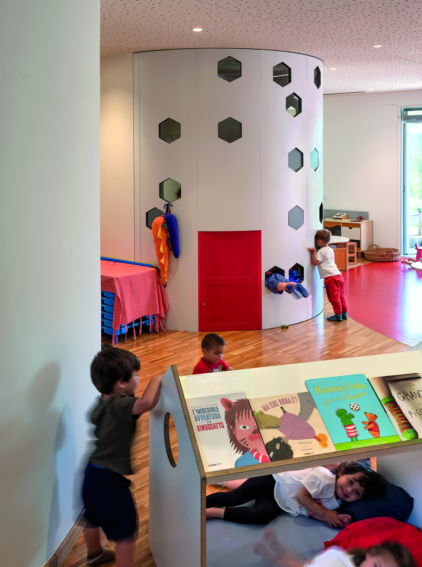 La raffinatezza delle scelte di interior in Asilo Bianco articola gli spazi interni con arredi capaci di tenere insieme le dimensioni progettuali più preziose: la libertà di esplorare, la varietà di stimoli e situazioni, l’intimità del singolo bambino, il lavoro di piccolo gruppo.