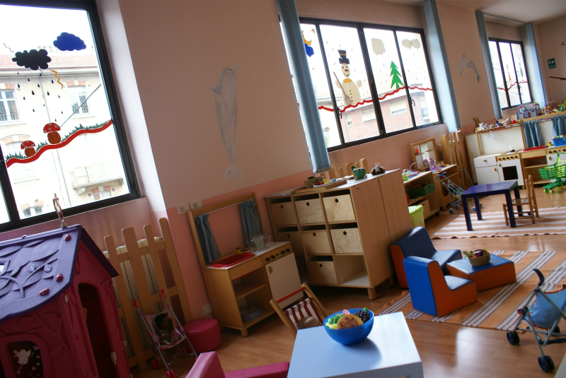 – cucina interna: la cuoca si occupa della gestione dei pasti personalizzati per i lattanti e della preparazione di colazione, pranzo e merenda per i bimbi più grandi, seguendo il menù stilato dal Sian di Torino.