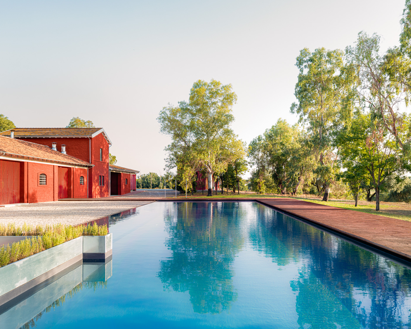 tipico rosso dei casali del Borgo della Mistica si specchia nell’azzurro della piscina, le vestigia storiche dell’Acquedotto Alessandrino si affacciano sul verde del vigneto, i profumi del giardino aromatico arrivano sino in tavola al ristorante: il Borgo della Mistica è l’