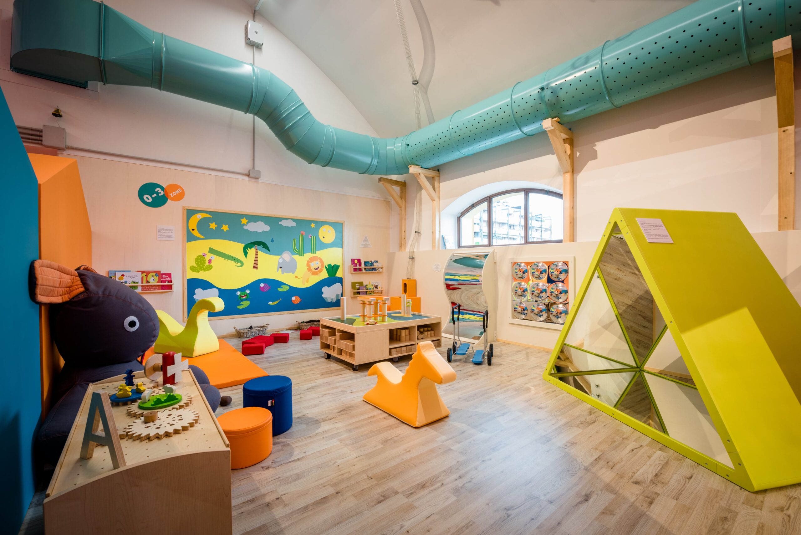 Uno spazio dove poter sperimentare con i sensi, in cui ogni fascia d’età, 0-3, 4-6, 7-9 e 10-12 anni trova il suo spazio e può curiosare e scoprire.