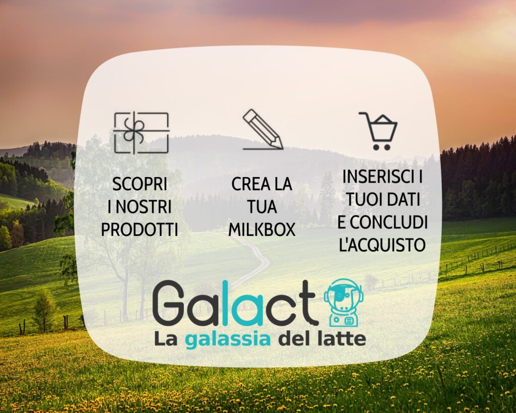 Galact punta ad offrire un servizio differenziato per ogni singola esigenza, curando il rapporto con il cliente, che diventa un membro della loro comunità e non un semplice acquirente occasionale. Sarete coinvolti nel progetto, facendo crescere gli allevatori selezionati, a scapito degli allevamenti intensivi, con un servizio di qualità tracciabile, dalla mungitura alla tavola.
