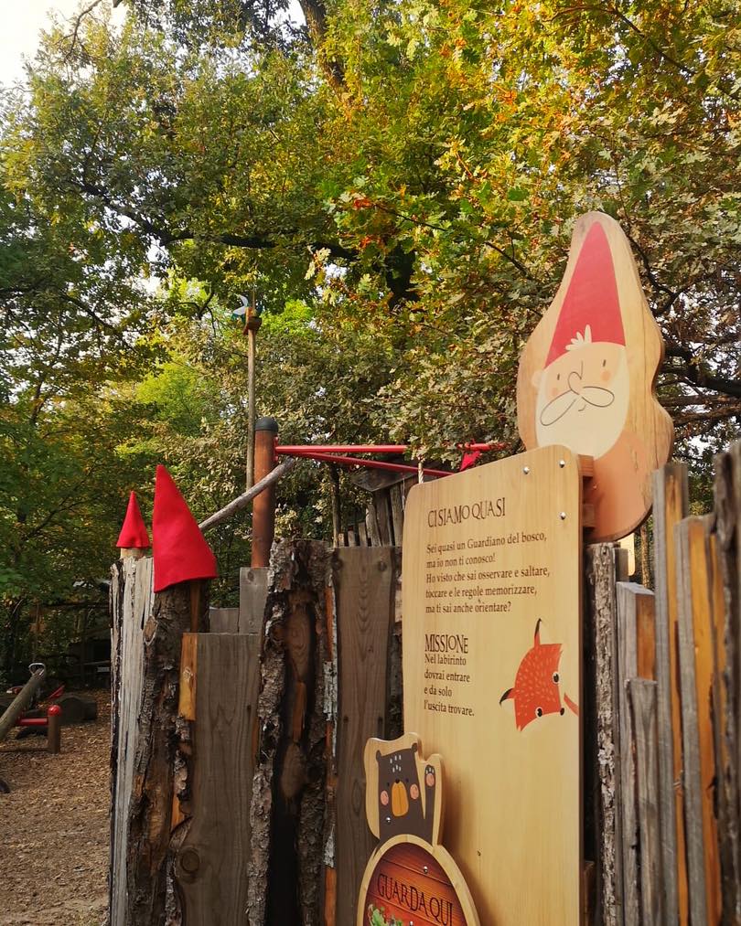 Oltre al percorso tematico e la missione di diventare “Guardiano del bosco” trovate il labirinto, ponte tibetano, rete sospesa sugli alberi per saltare, travasi della sabbia, casette attrezzate..