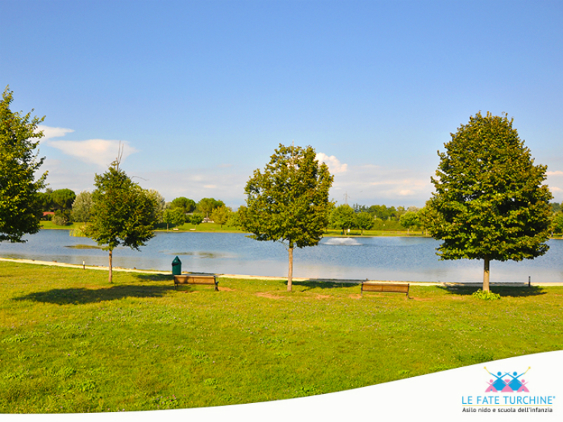 LA STRUTTURA: Le attività dei bambini vengono svolte in una struttura moderna e sicura, collocata in un preciso contesto ambientale, lontana dal caos e circondata da un ampio parco con un bellissimo laghetto. Grandi vetrate consentono ai bambini di vivere immersi nel paesaggio esterno, cogliendo le trasformazioni stagionali, e un ampio atrio apre alle tre sezioni per la scuola dell’infanzia e alle due sezioni per il nido. A completare la struttura un bellissimo teatro e un grande cortile con zona verde annessa, dov’è stato allestito un piccolo orto per insegnare ai bimbi il rispetto per la natura e dove sono presenti scivoli, dondoli e giochi, tutti rispondenti alle norme di sicurezza attualmente vigenti.