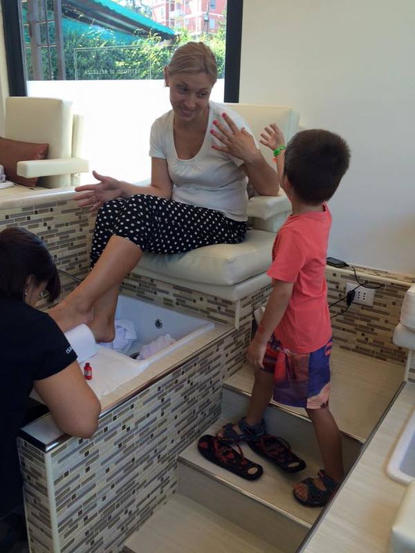 Una mamma non deve mai smettere i sentirsi donna… ‘le cose essenziali’ come dice Isotta ‘niente di troppo impegnativo: ceretta, mani e piedi’… questo l’obiettivo da raggiungere! E’ quanto mi ha detto Isotta, proprietaria del centro, dove ho trascorso con un’amica una mattinata di benessere e coccole per provare una serie di servizi molto accurati: pulizia del viso, massaggio rilassante, manicure (con smalto durato 20 giorni!) e pedicure con lavanda e bendaggio. Isotta ha pensato davvero a tutto: è aperta di domenica e inoltre il centro è ‘a misura di mamma’ proprio perchè mentre le mamme sono accolte in un posto pieno di luce, rilassante e confortevole, i bambini si divertono nel parco giochi adiacente accompagnati da una babysitter messa a disposizione o da una persona di propria fiducia. Idea geniale, professionalità elevata: un’esperienza da provare!