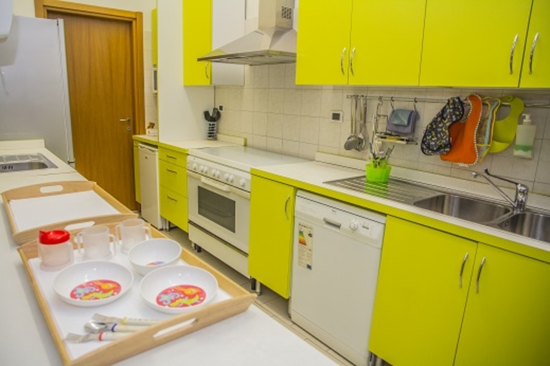 Tutti gli arredi ed i giochi rispettano gli standard richiesti dalle norme di settore, inoltre l’intera struttura è soggetta ad un’attenta e precisa sanificazione quotidiana. L’asilo dispone di una cucina interna, regno della nostra cuoca che con estrema cura ogni giorno si occupa della scelta del menù, ricco ed equilibrato, che prevede quotidianamente frutta e verdura di stagione nonchè cibi freschi.