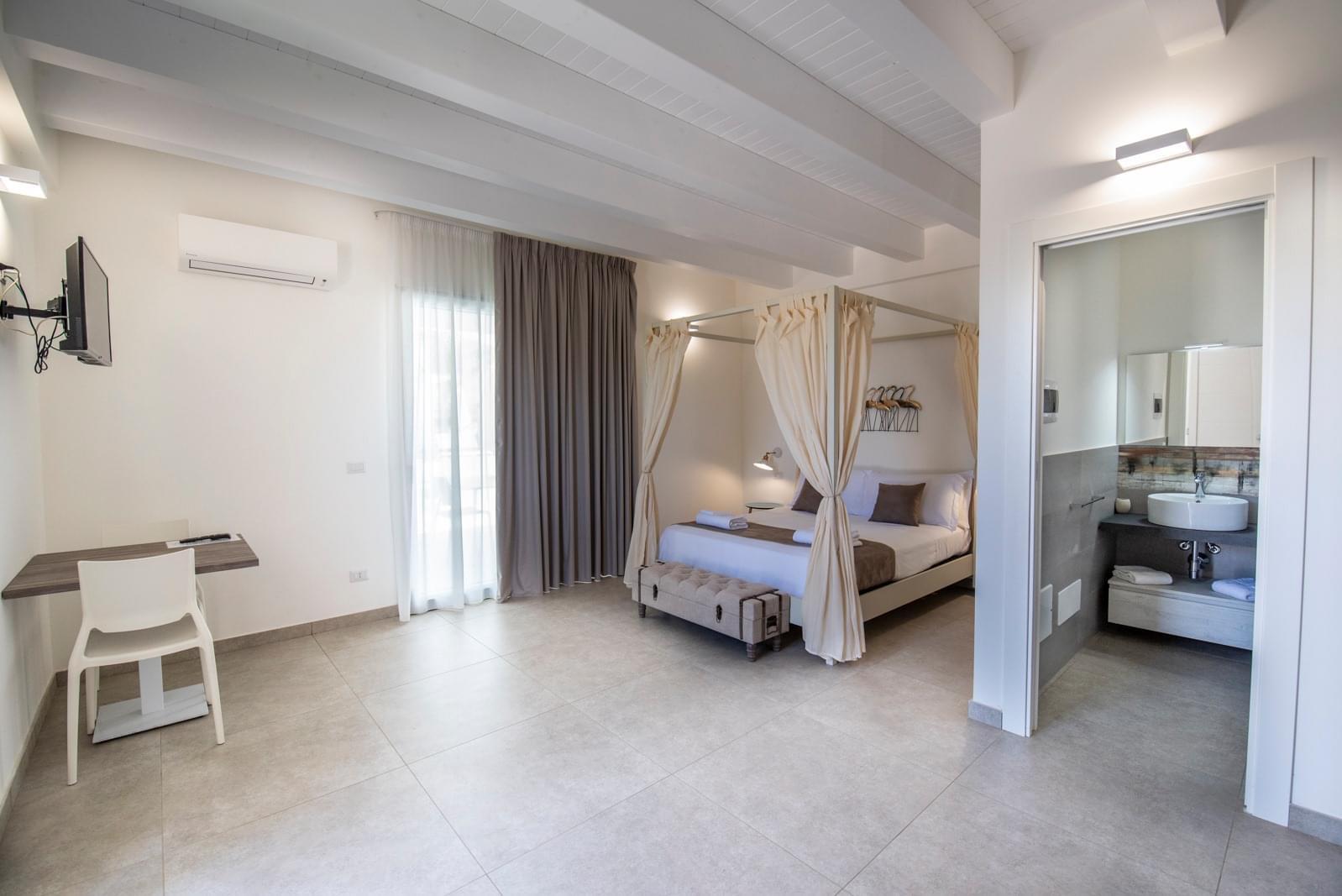 La struttura è composta da 16 appartamenti indipendenti, finemente arredati e completi di tutti i comfort per una vacanza a Marzamemi. Ogni soluzione comprende un letto matrimoniale e un letto singolo, biancheria da bagno e da letto, lavatrice, asse e ferro da stiro, ma anche di cucina completa di stoviglie con forno, frigorifero, freezer e piano cottura ad induzione. Completa l’appartamento una terrazza con tavolo, divanetto e poltrone. Su richiesta è possibile avere il 4° letto chiudibile.