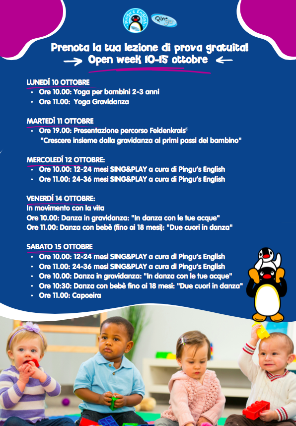 In programma dal 10 al 15 ottobre presso la scuola Pingu’s English Isola. Si possono prenotare lezioni di prova gratuite e scoprire tutti i nuovi corsi in partenza!
