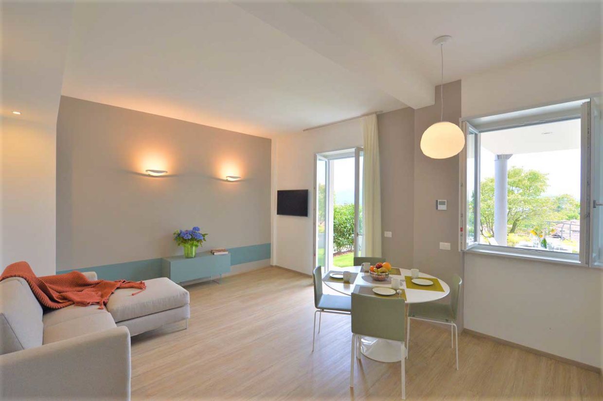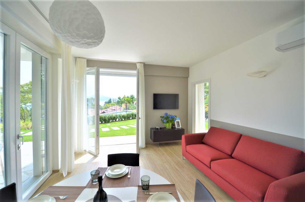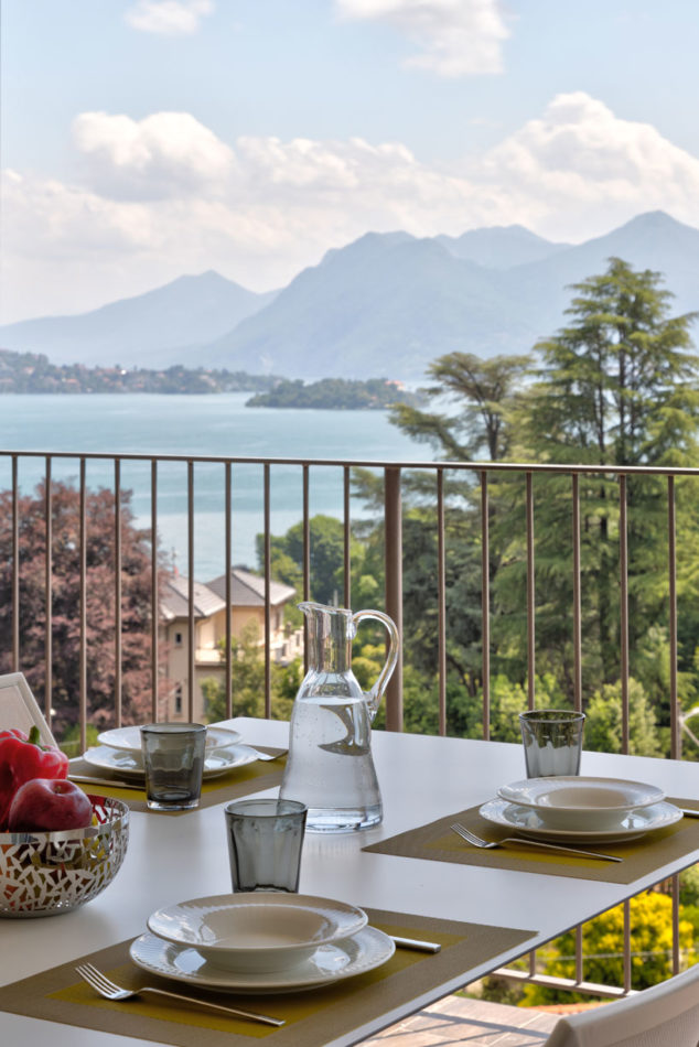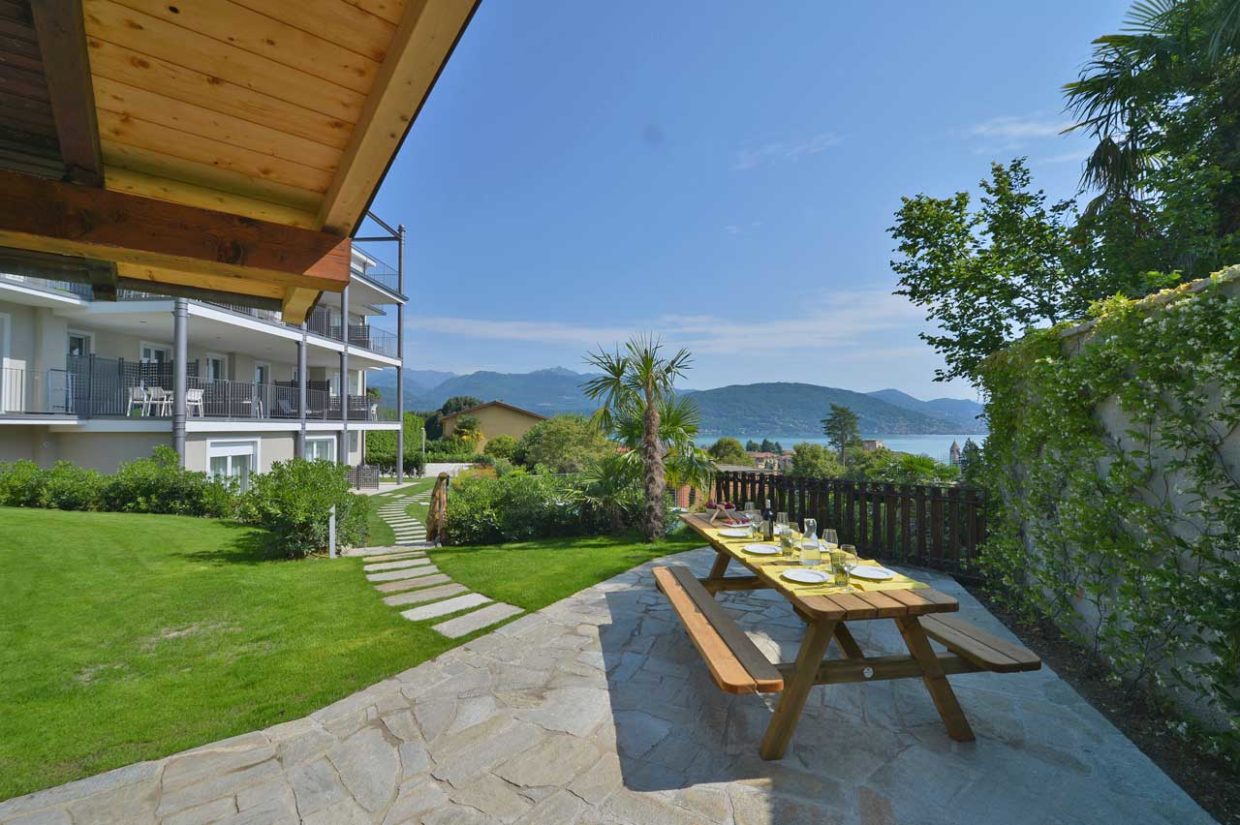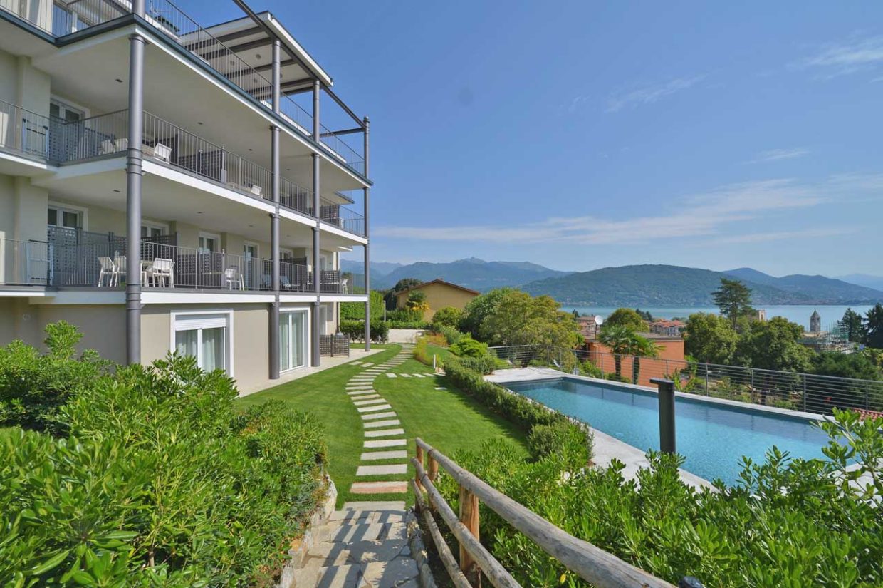 I colori della terra e il blu del cielo inquadrano gli 8 appartamenti con un’uscita indipendente, che affaccia sul giardino condiviso vista lago. Ogni appartamento ha un’area esterna privata oppure un terrazzo panoramico, con una vista mozzafiato sulle Isole Borromee.
