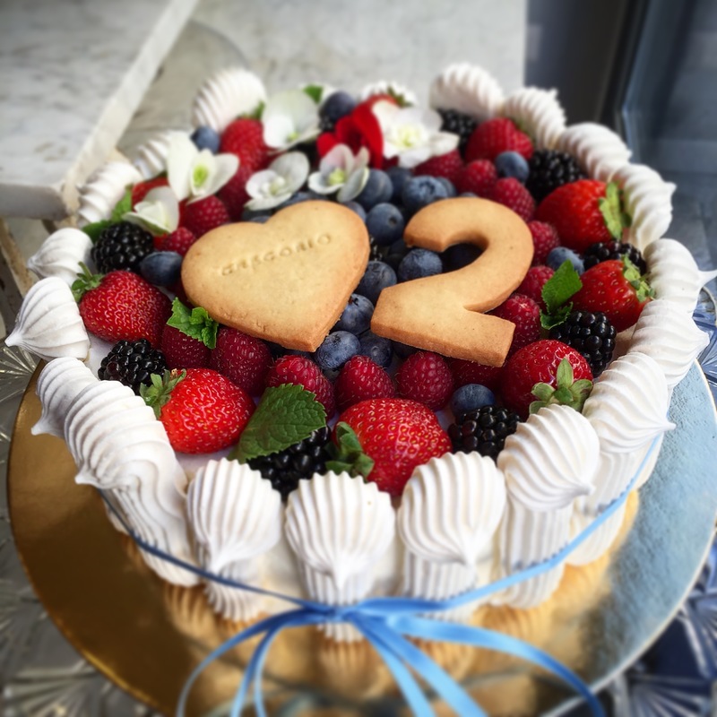 La più amata tra le torte di compleanno, frolla sablè friabile farcita con ganache al cioccolato bianco montata e decorata a piacere con frutta, fiori, macarons e meringhe.