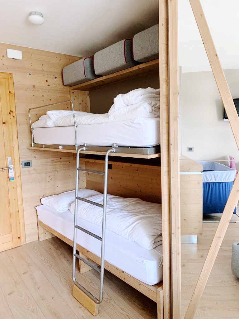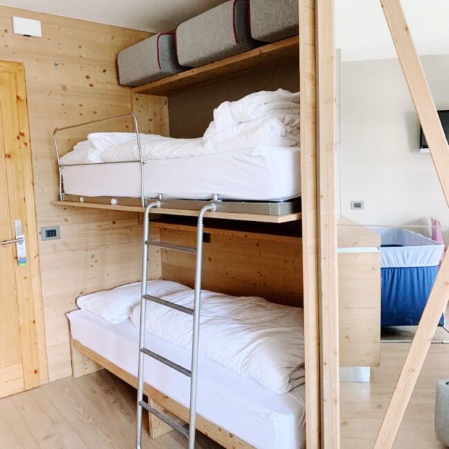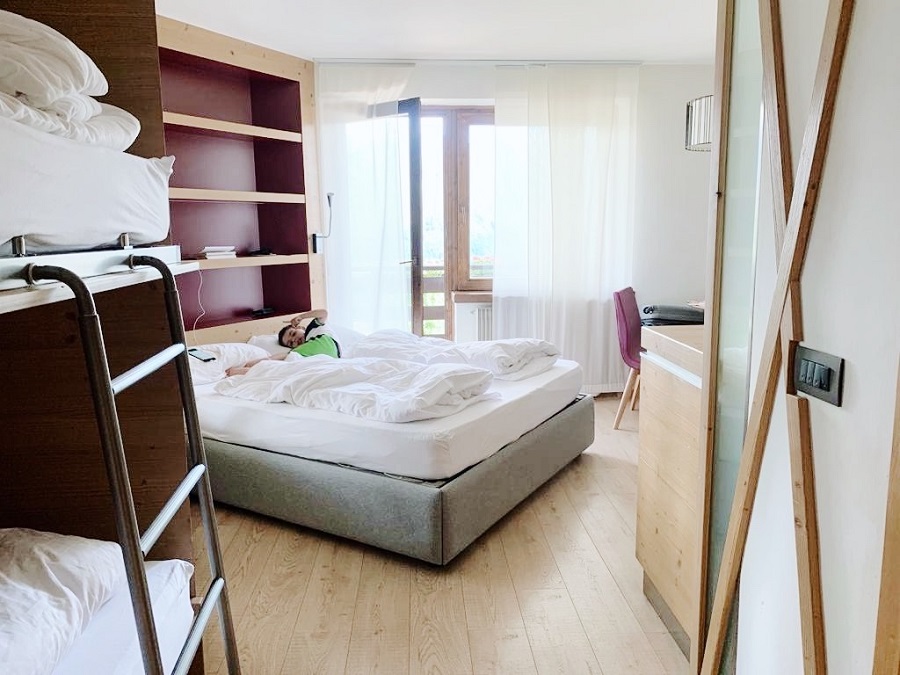 Io e la mia famiglia abbiamo dormito nella Junior Suite ‘Vita Nova’ Benessere, piccola ma dotata di ogni comfort perfetta per chi, come noi, ha due bambini piccoli: un letto matrimoniale, un letto a castello, un bagno con doccia, una piccola zona living dotata addirittura di una cucina a scomparsa di design fornita proprio di tutto: lavabo, fornelli a induzione, cappa, microonde, frigo e lavastoviglie. A noi è stata davvero utile perché, di ritorno dalle nostre passeggiate, avevamo il succo in fresco per l’”aperitivo” del mio bimbo grande e, la sera, potevamo tranquillamente scaldare il latte al più piccolo.