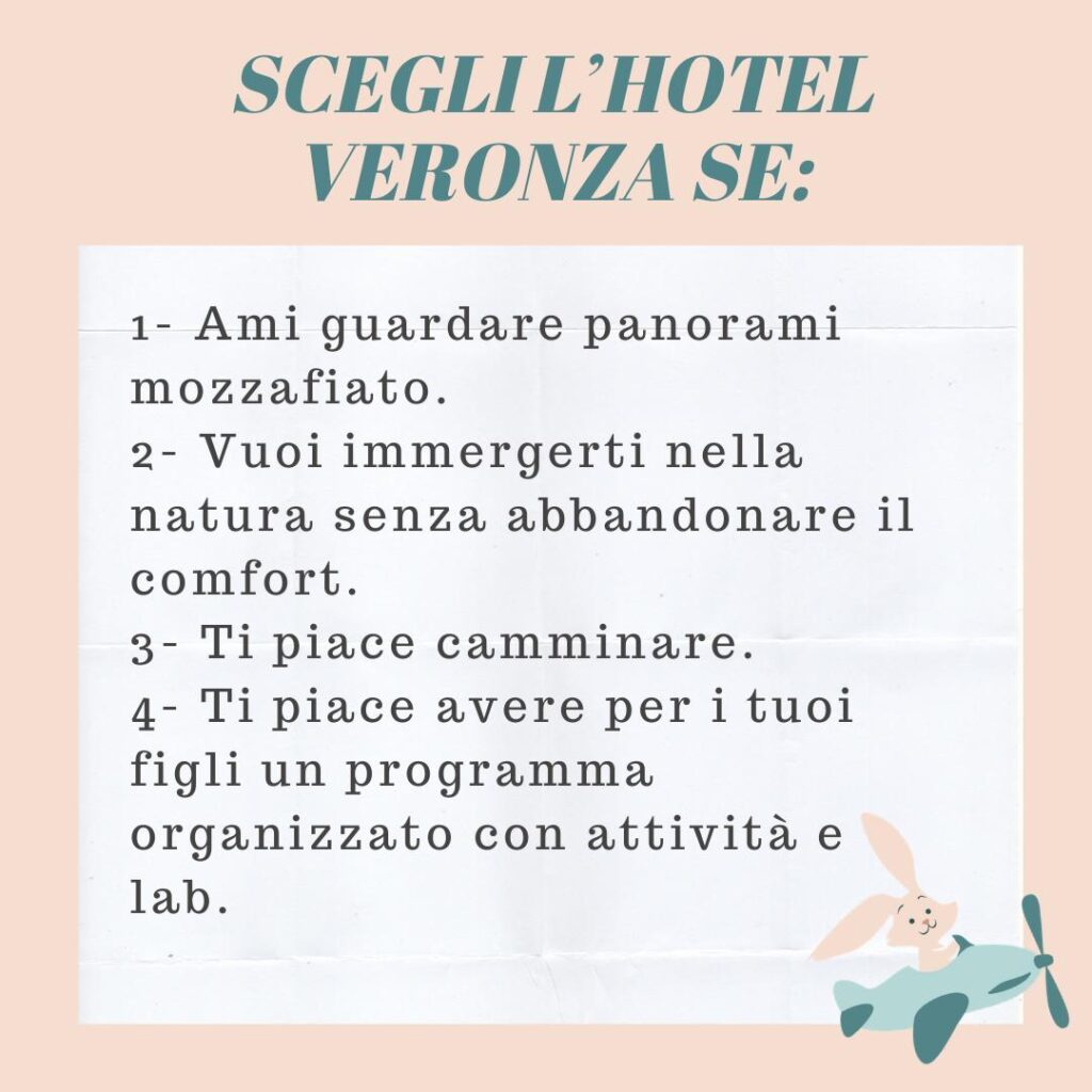 Insomma, è vero che molte delle stanze, come il playground e il teatro, al momento sono chiusi causa covid, ma devo dire che tutto lo Staff dell’ Hotel Veronza ha lavorato magnificamente per trovare delle valide alternative per far sentire comunque in un clima sereno di vacanza, genitori e bambini.
