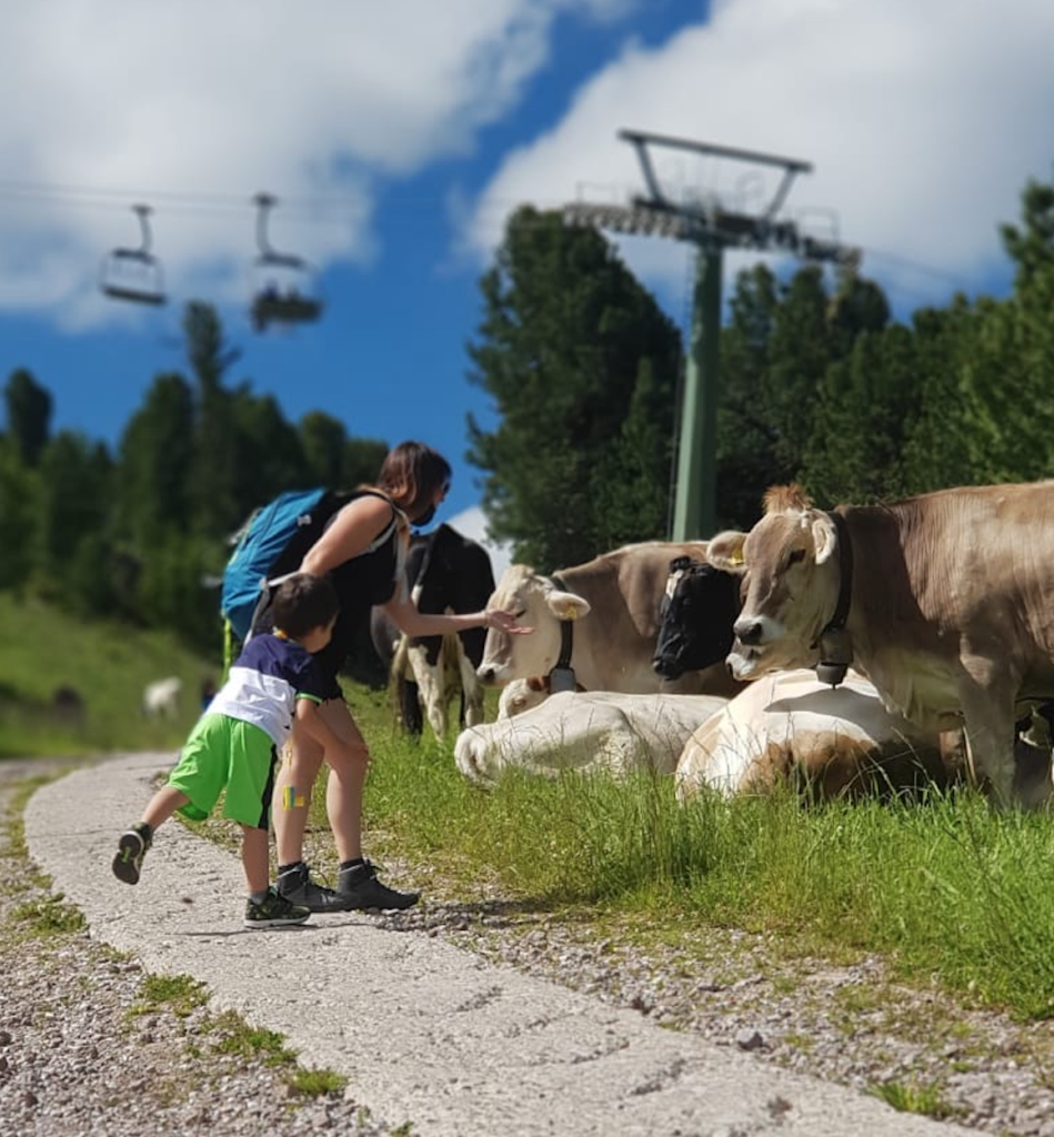 Mentre abbozzavo questo paragrafo, ridevo da sola. Ricordo che in uno dei primi articoli scritti per Mumadvisor, vi raccontavo di una gita fatta ai Pian delle Betulle: il mio primo bimbo aveva solo pochi mesi e per paura che gli venisse il mal di orecchie per il dislivello (1500mt), io e mio marito decidemmo di non salire sulla cabinovia ma di farcela tutta a piedi. Oggi, invece, ho delle splendide foto ricordo della mia vacanza a Cavalese, all’Hotel Veronza, che immortalano me, mio marito, il mio bimbo grande di quattro anni e il piccolino di uno, seduti su una seggiovia mentre ci avviamo a raggiungere la vetta panoramica del Paion del Cermins a 2200 mt. Ah! Come cambia la vita dal primo al secondo figlio eh?