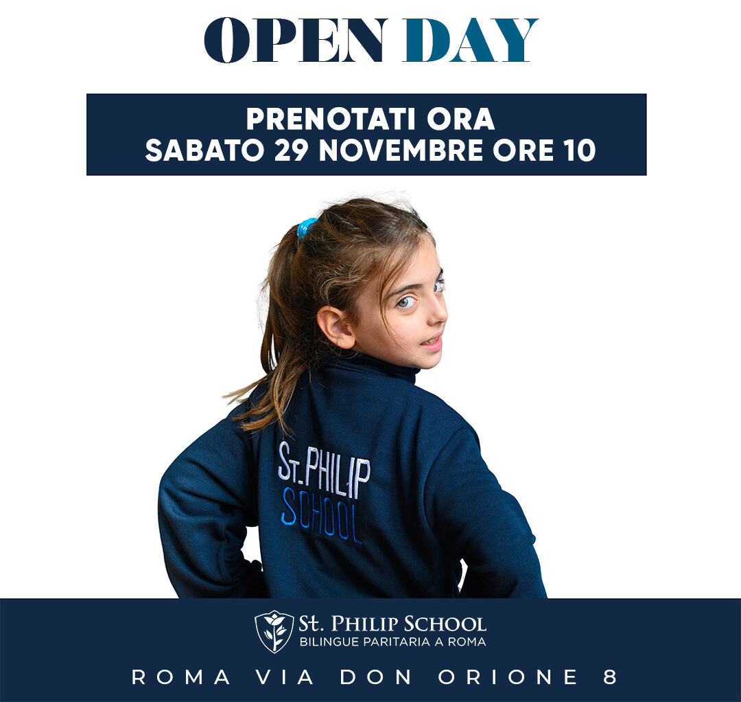 Sabato 29 novembre 2025 alle ore 10:00 la St Philip School apre le proprie porte, per dare la possibilità alle famiglie interessate di conoscere la scuola bilingue e scoprire tutti gli ordini di studio (Infanzia, Primaria e Secondaria) e il metodo che viene utilizzato.