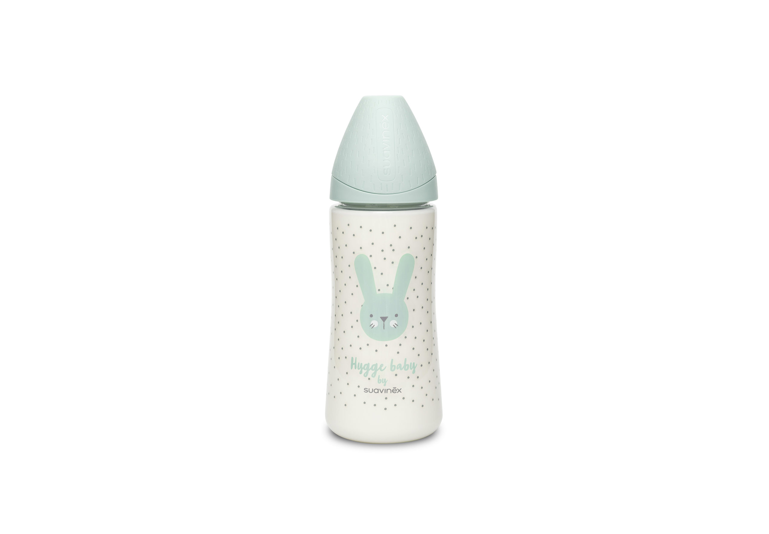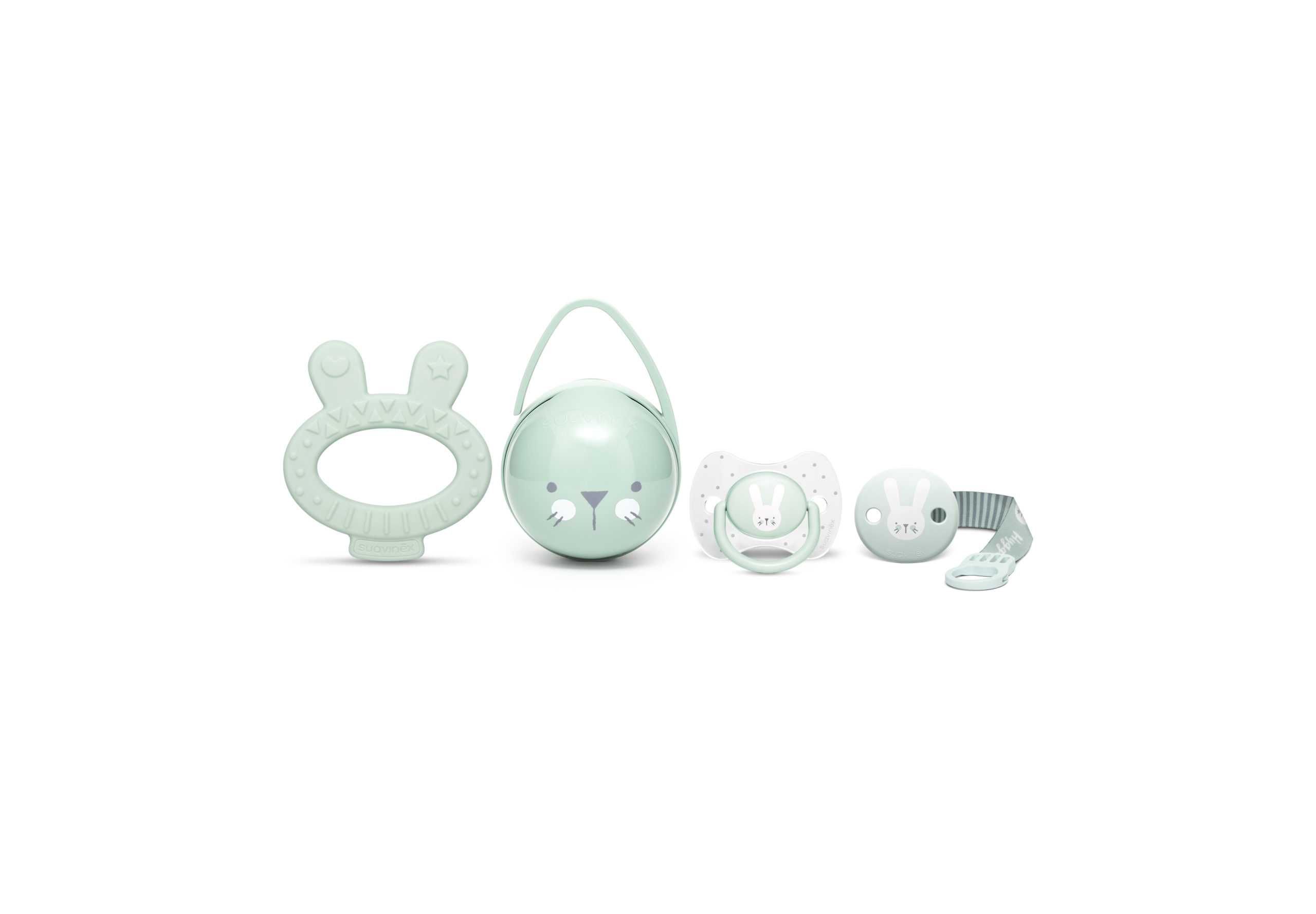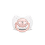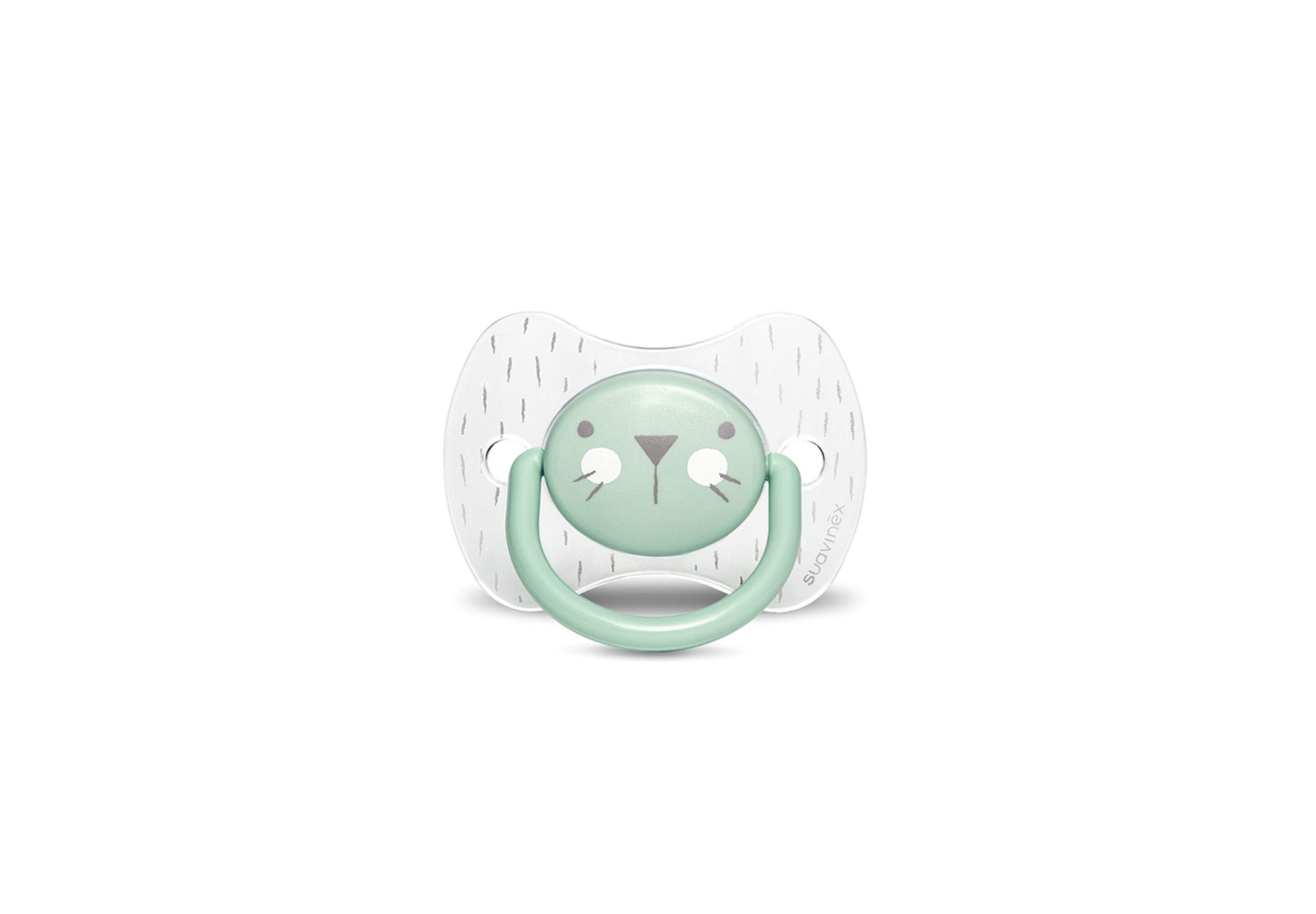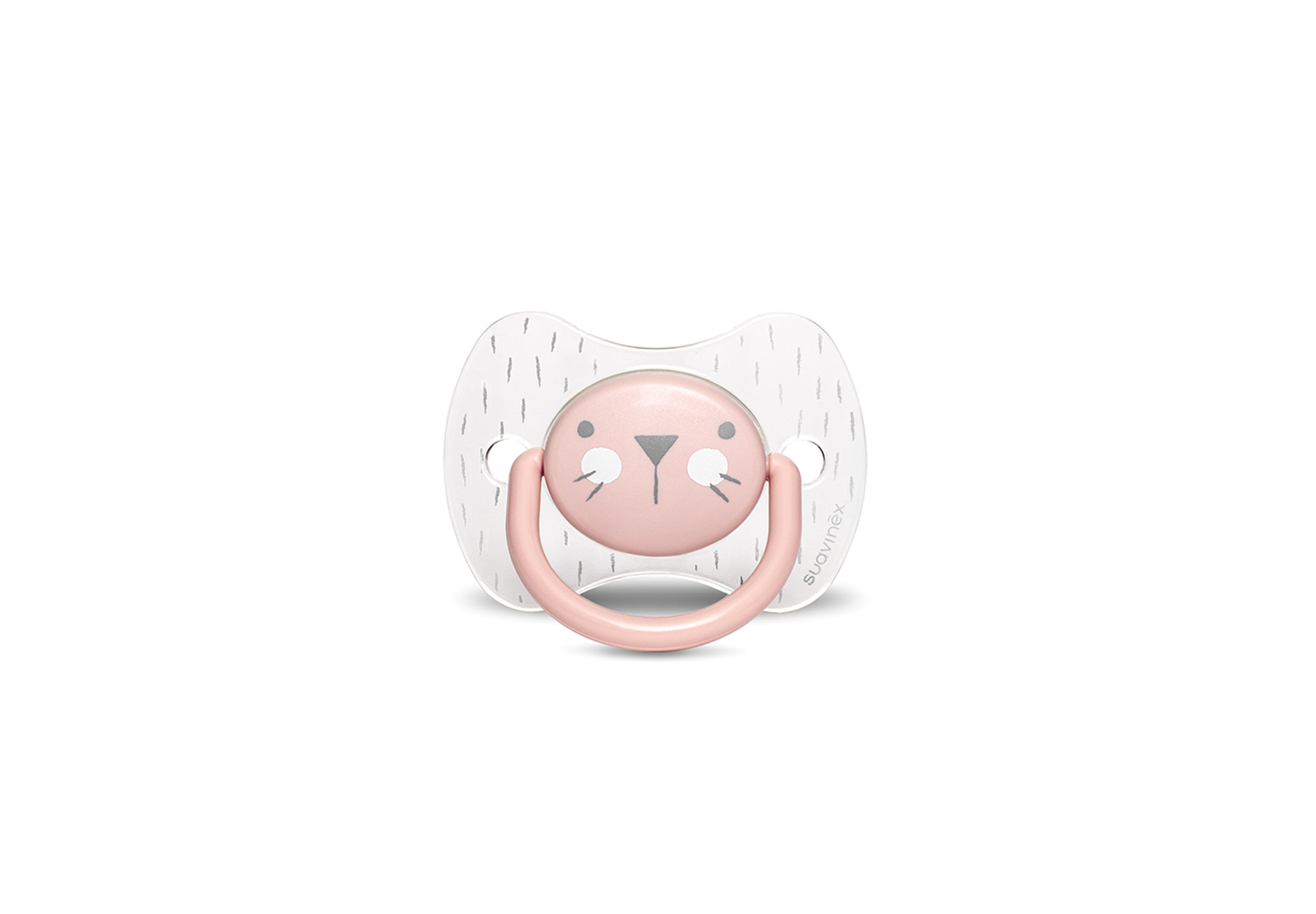 Il delizioso musetto del coniglietto compare naturalmente anche sugli scudi dei succhietti della collezione Hygge. Succhietti con tettarella reversibile in silicone, che con la sua forma piatta e simmetrica esercita una pressione minima sul palato ed è quindi sempre correttamente posizionato nella bocca del bambino.