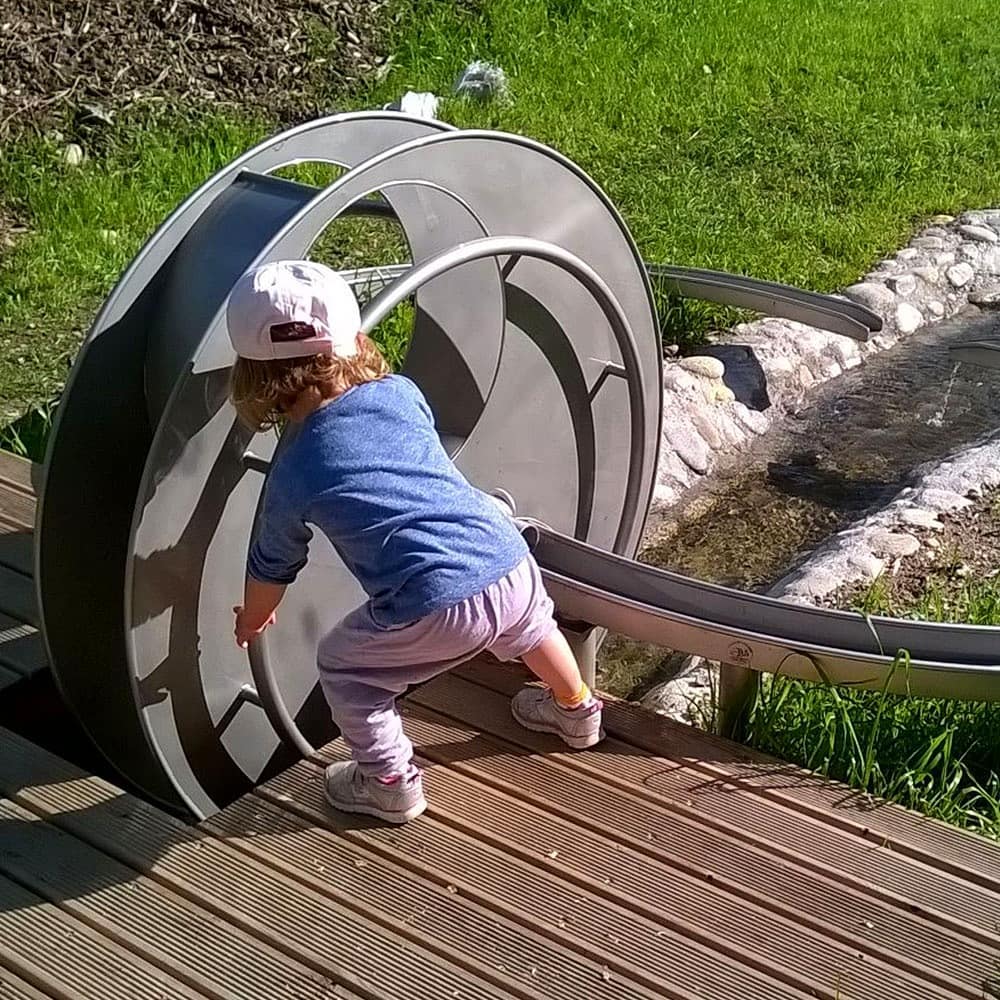 Uno spazio gioco per comprendere e sperimentare il movimento e la potenza dell’acqua. Una vasca di accumulo permette il funzionamento dei giochi d’acqua: installazioni, viti di Archimede, mulini, canaline, paratoie e pompe permetteranno ai bambini (ma anche agli adulti) di apprendere la forza idrodinamica e cinetica delle acque divertendosi.
